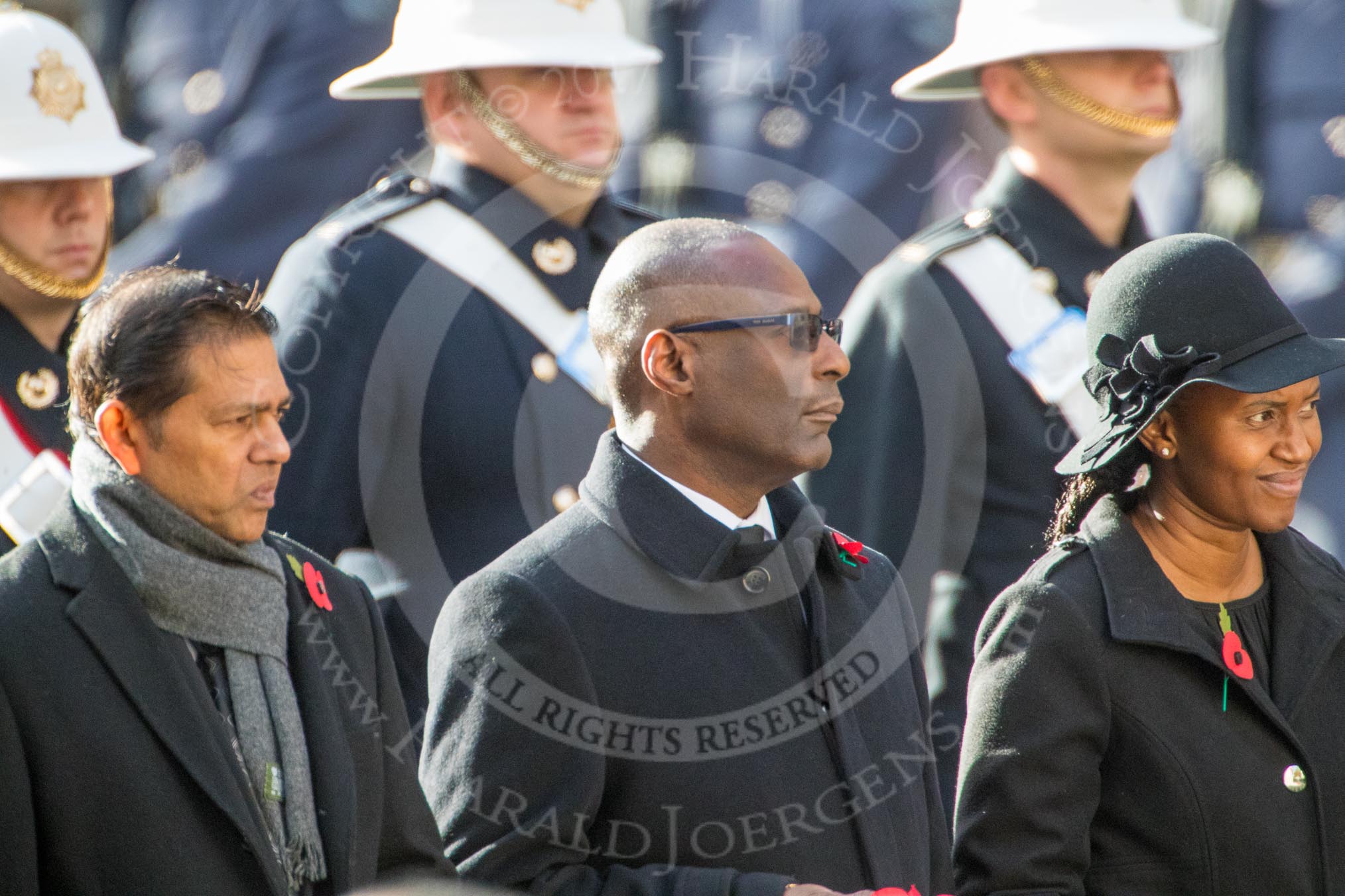 The High Commissioner of Mauritius, the Deputy High Commissioner of Barbados, and the Acting High Commissioner of Lesotho during Remembrance Sunday Cenotaph Ceremony 2018 at Horse Guards Parade, Westminster, London, 11 November 2018, 11:13.