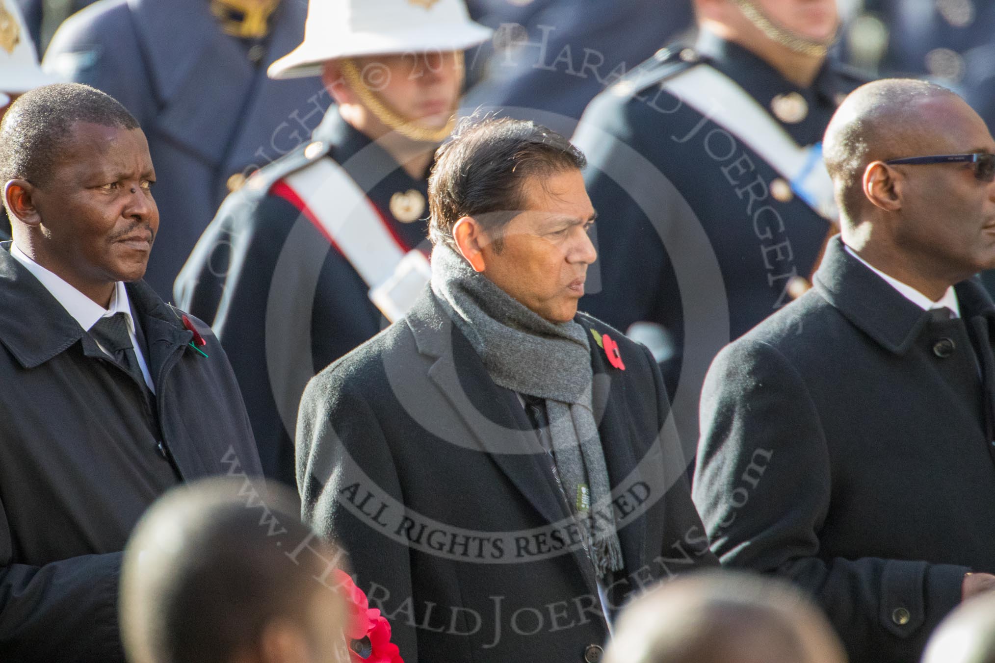The High Commissioner of Eswatini (the former Swaziland) and the High Commissioner of Mauritius during Remembrance Sunday Cenotaph Ceremony 2018 at Horse Guards Parade, Westminster, London, 11 November 2018, 11:13.