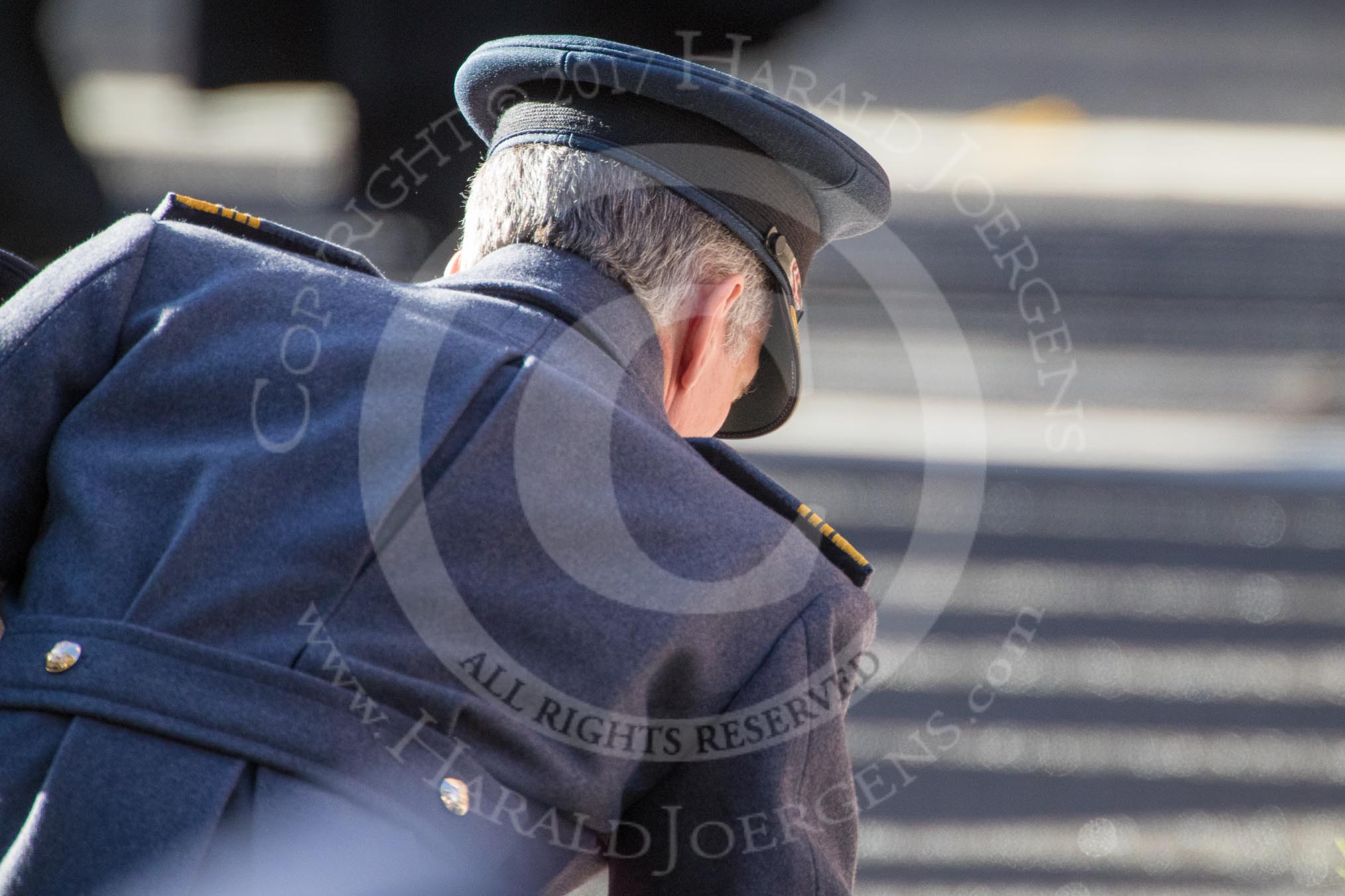 Air Chief Marshal Sir Stephen Hillier KCB CBE DFC ADC, Chief of the Air Staff laying a wreath during the Remembrance Sunday Cenotaph Ceremony 2018 at Horse Guards Parade, Westminster, London, 11 November 2018, 11:16.