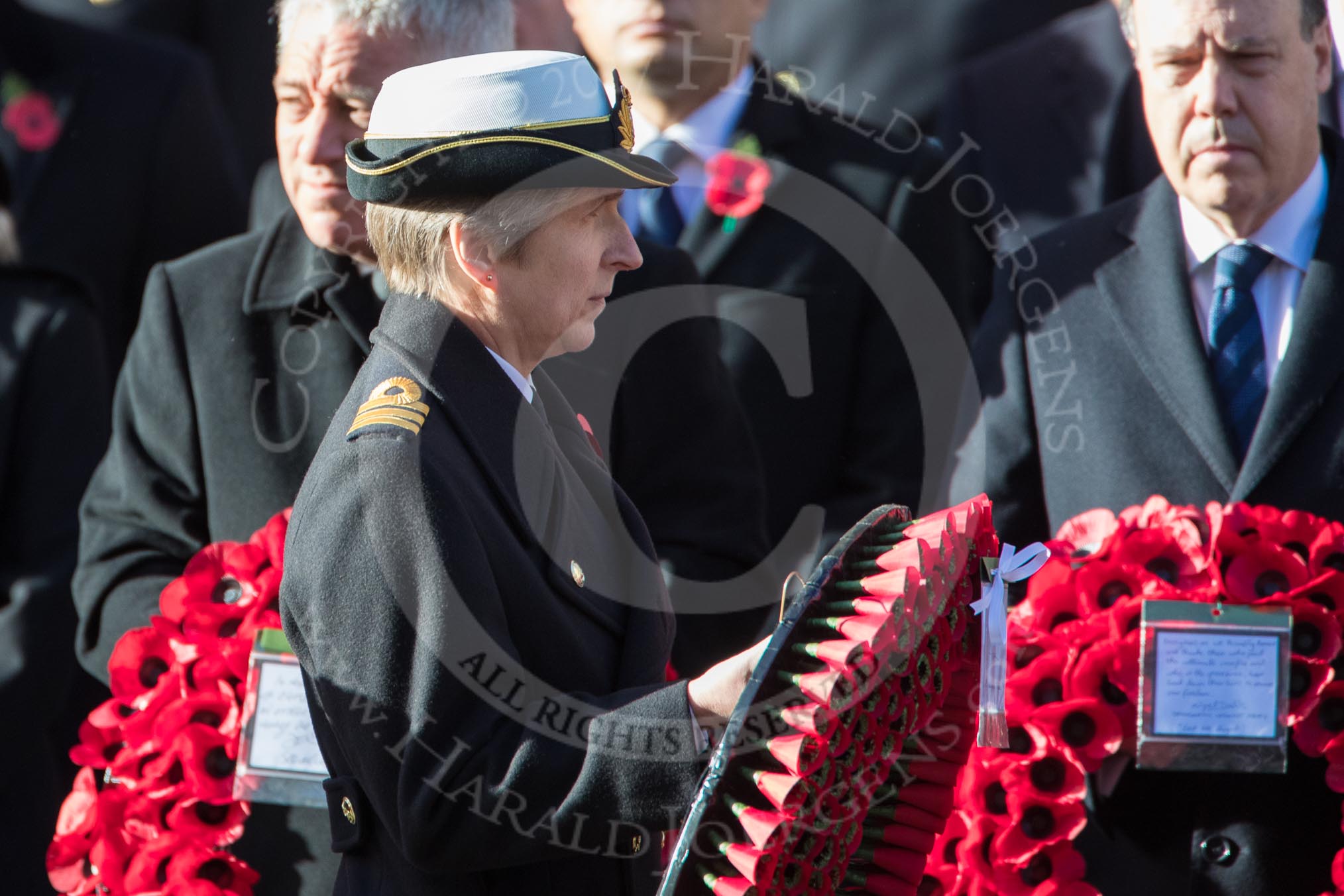 Commander Anne Sullivan, Royal Navy, Equerry to The Princess Royal, during Remembrance Sunday Cenotaph Ceremony 2018 at Horse Guards Parade, Westminster, London, 11 November 2018, 10:59.