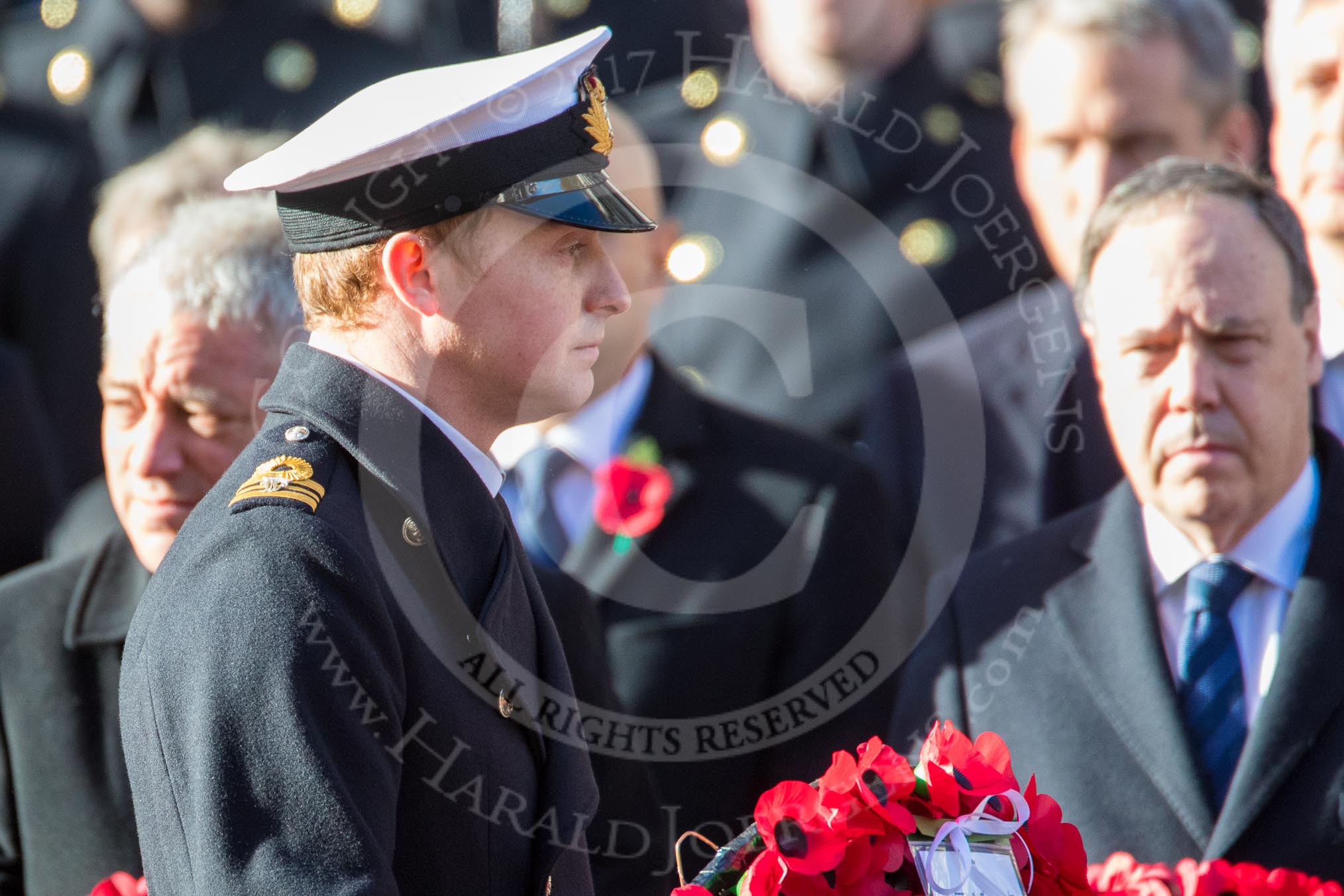 Lieutenant Commander David Brannighan, Royal Navy, Equerry to The Duke of Cambridge, during Remembrance Sunday Cenotaph Ceremony 2018 at Horse Guards Parade, Westminster, London, 11 November 2018, 10:59.
