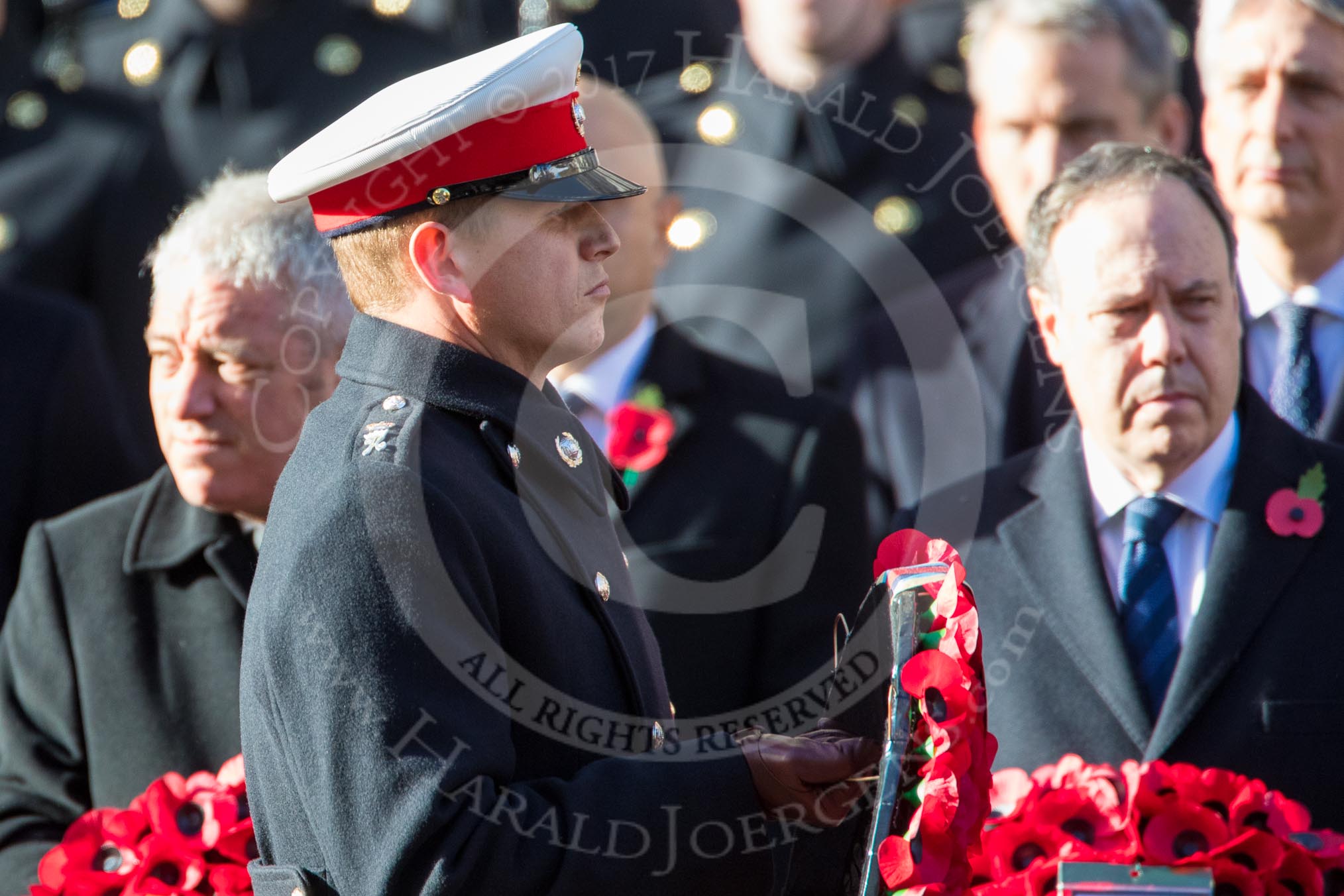 Major Thomas Scott, Royal Marines, Equerry to The Duke of Sussex, during Remembrance Sunday Cenotaph Ceremony 2018 at Horse Guards Parade, Westminster, London, 11 November 2018, 10:59.