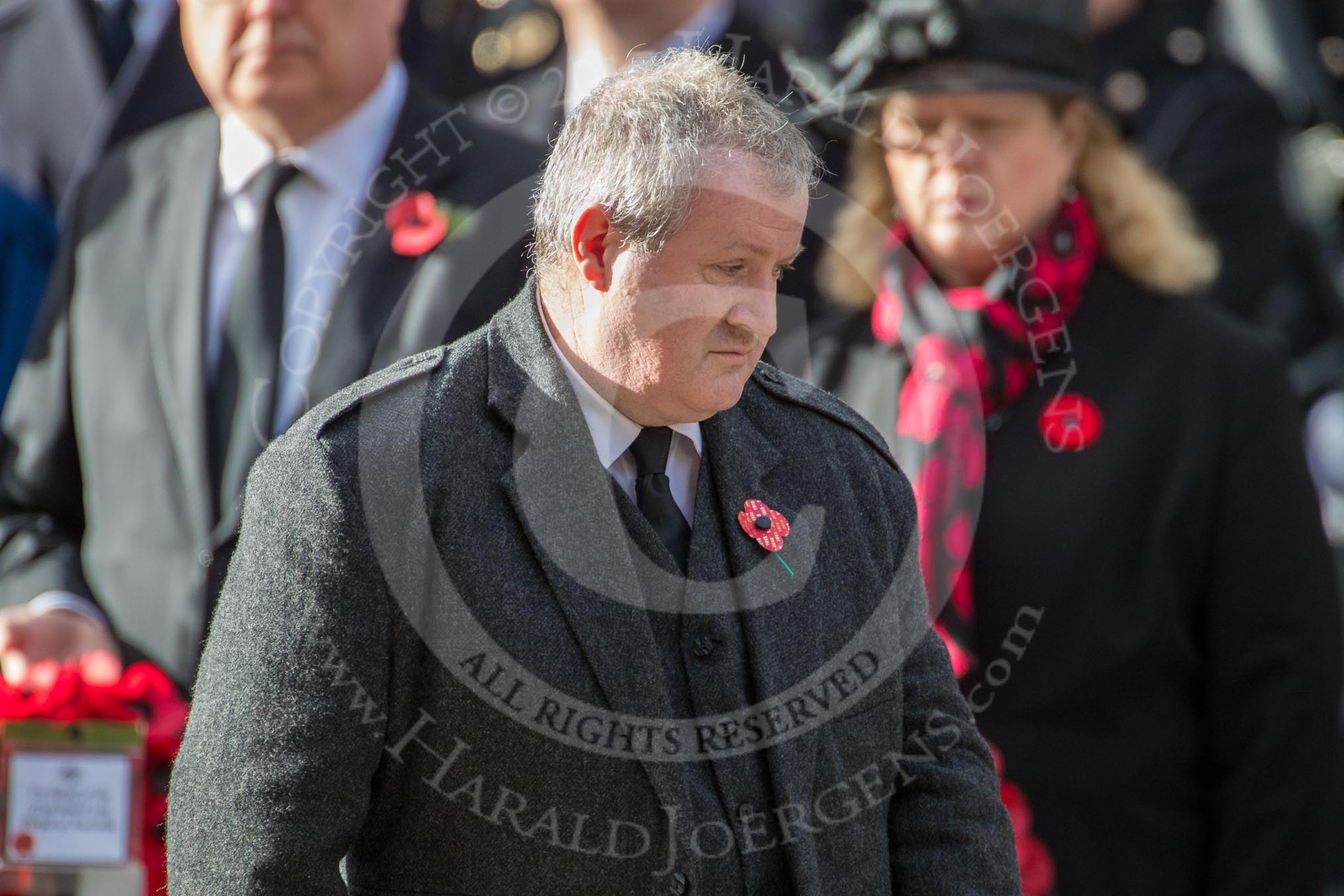 Mr Ian Blackford MP (the Westminster Scottish National Party Leader on the behalf of the SNP/the Plaid Cymru Parliamentary Group) during the Remembrance Sunday Cenotaph Ceremony 2018 at Horse Guards Parade, Westminster, London, 11 November 2018, 11:08.