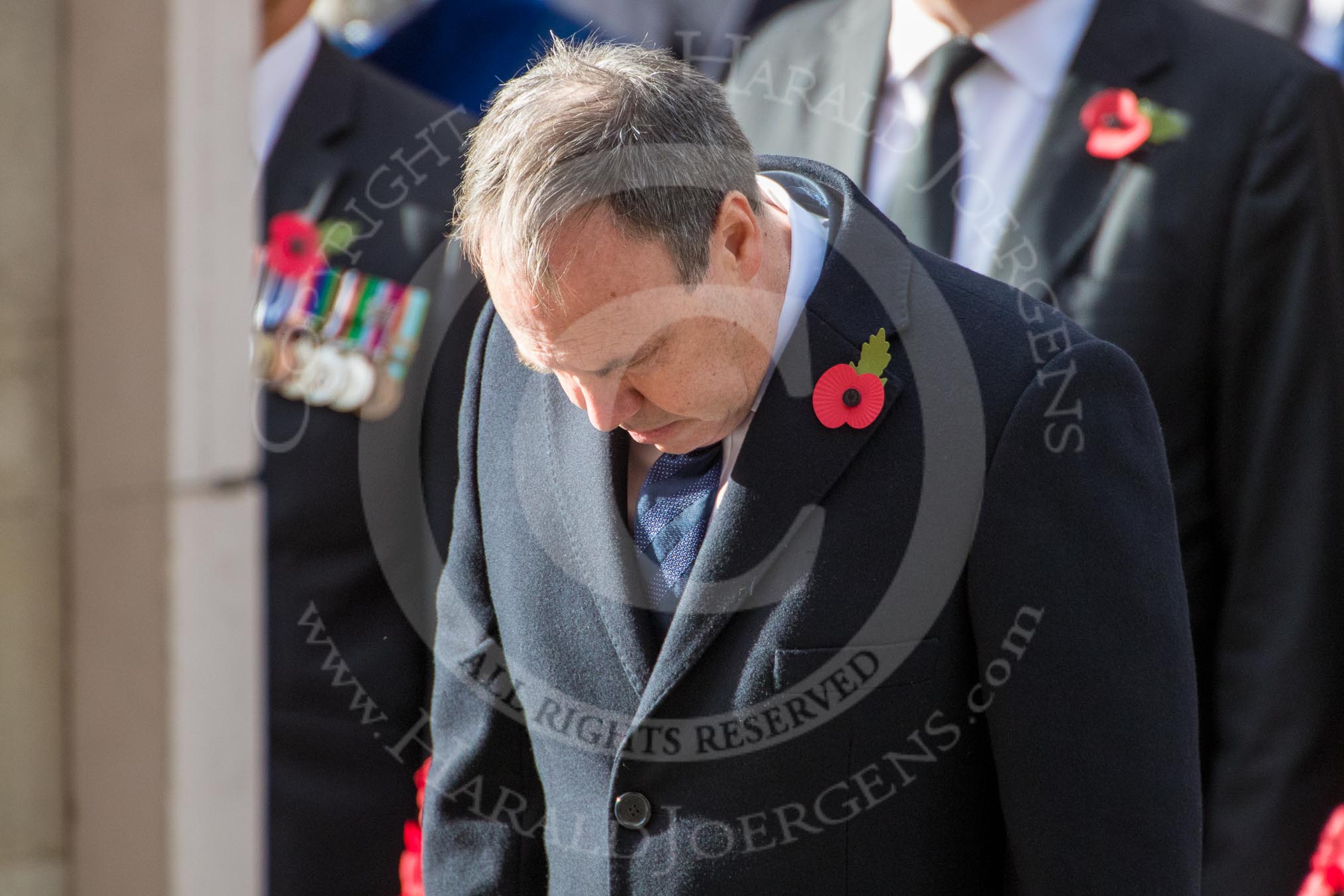 The Rt Hon Nigel Dodds OBE MP (Westminster Democratic Unionist Party Leader) during the Remembrance Sunday Cenotaph Ceremony 2018 at Horse Guards Parade, Westminster, London, 11 November 2018, 11:10.