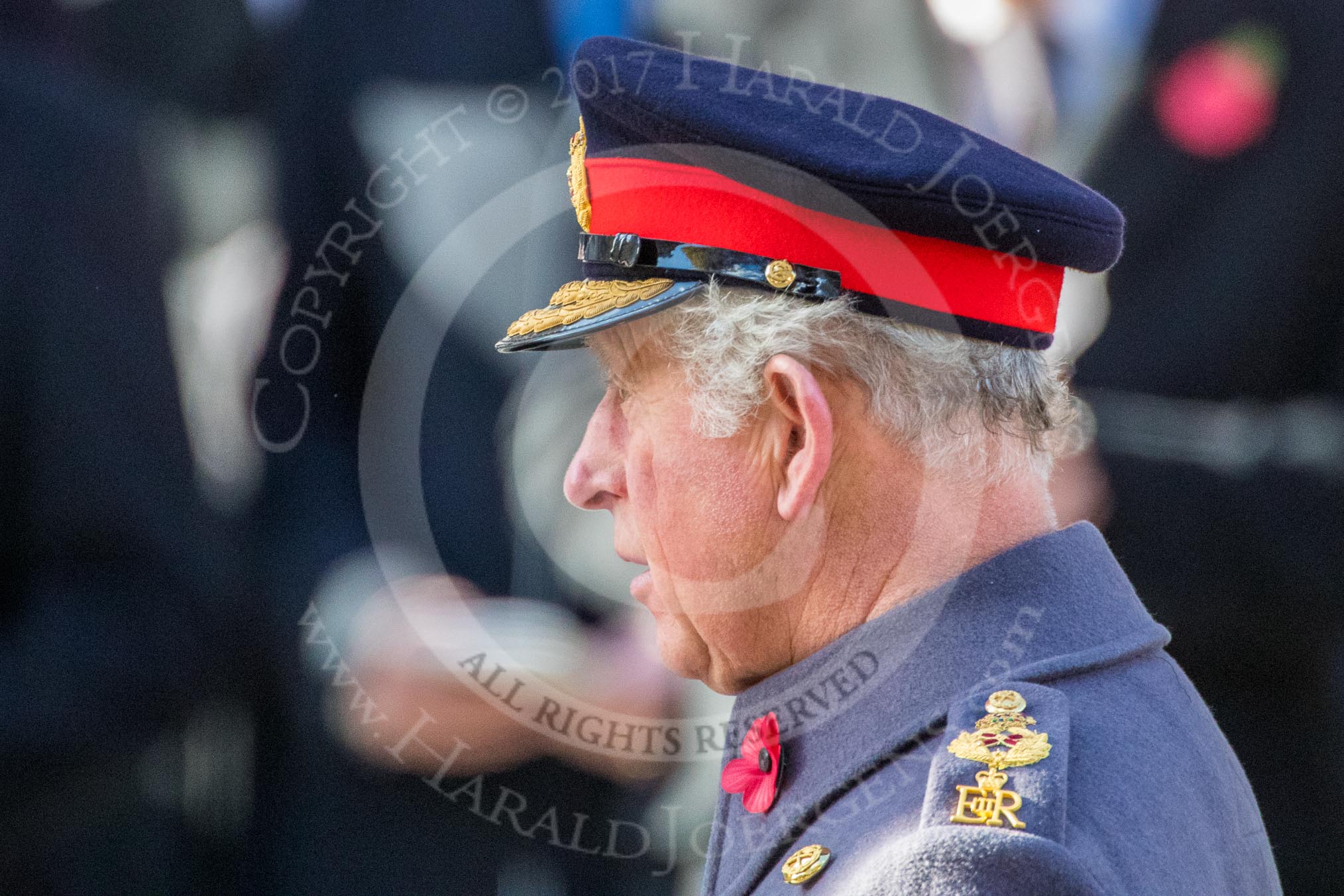 HRH The Prince of Wales (Prince Charles) during the Remembrance Sunday Cenotaph Ceremony 2018 at Horse Guards Parade, Westminster, London, 11 November 2018, 11:19.