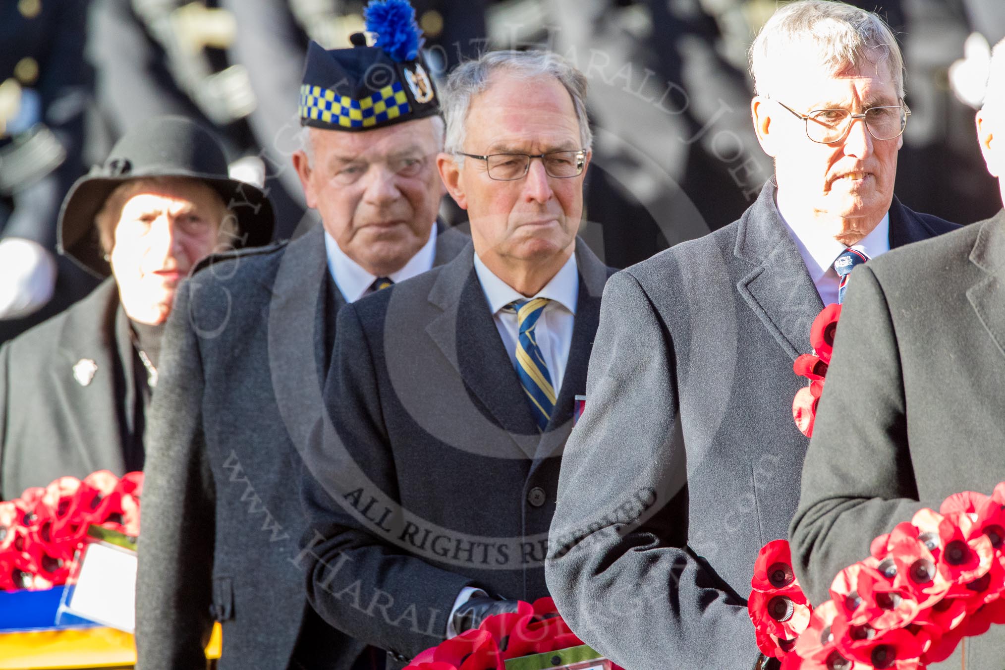 Veterans waiting for the March Past during the Remembrance Sunday Cenotaph Ceremony 2018 at Horse Guards Parade, Westminster, London, 11 November 2018, 11:36.