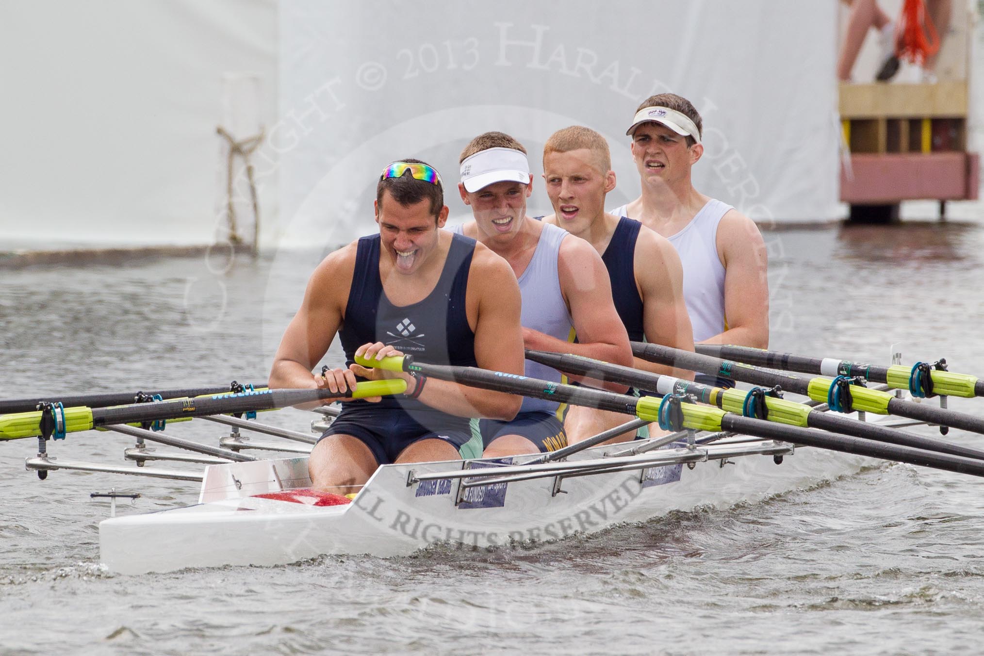 Henley Royal Regatta 2012 (Thursday): Race 24, Prince of Wales Challenge Cup: Runcorn Rowing Club (283, Bucks) v Isle of Ely Rowing Club and Bath University (275, Berks). River Thames beteen Henley-on-Thames and Remenham/Temple Island , Henley-on-Thames, Oxfordshire, United Kingdom, on 28 June 2012 at 11:21, image #171