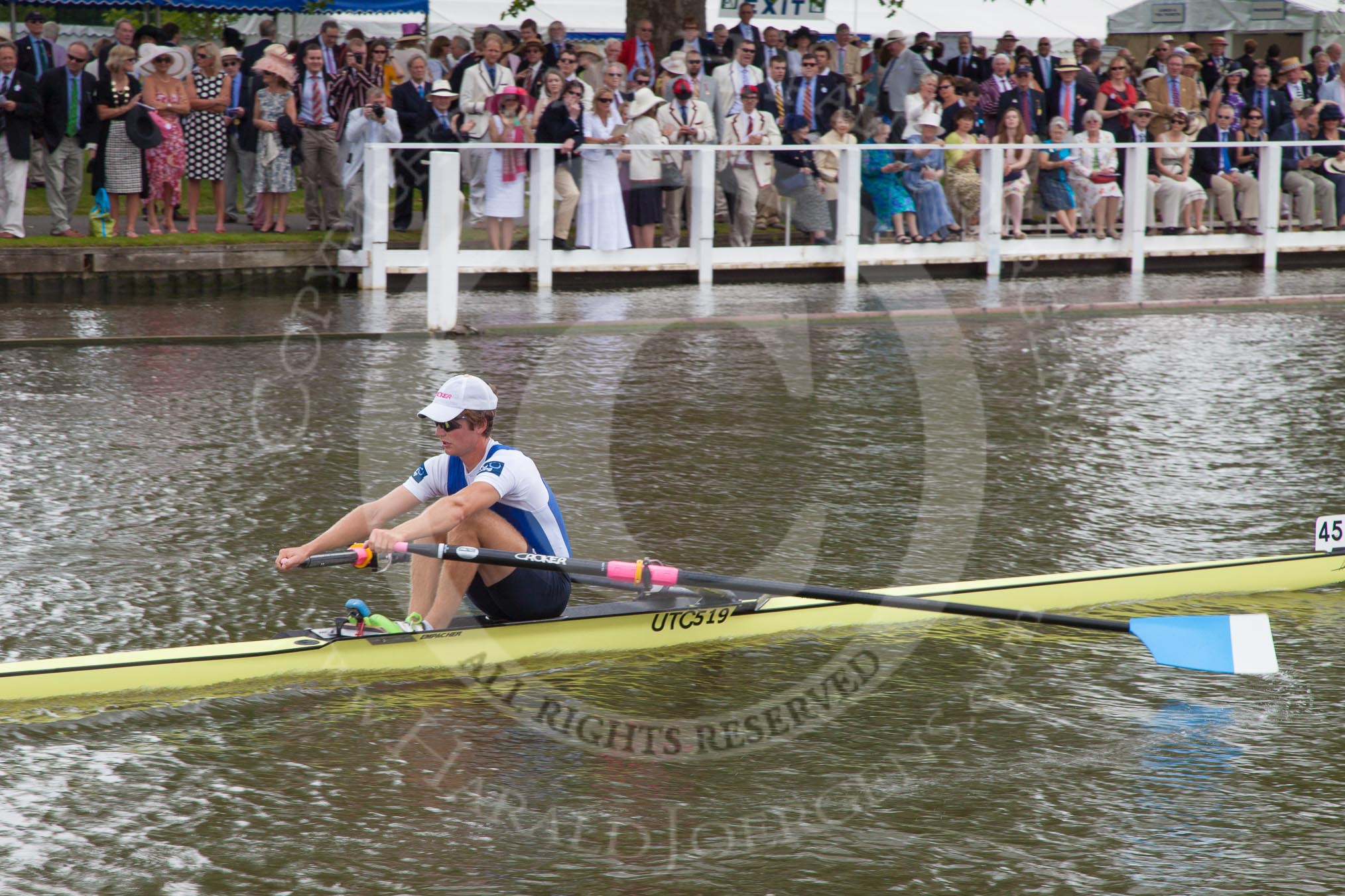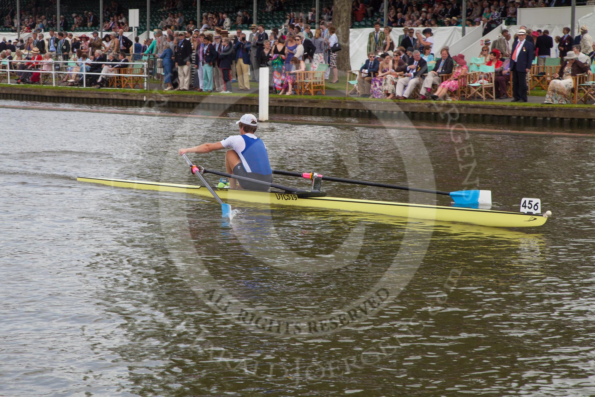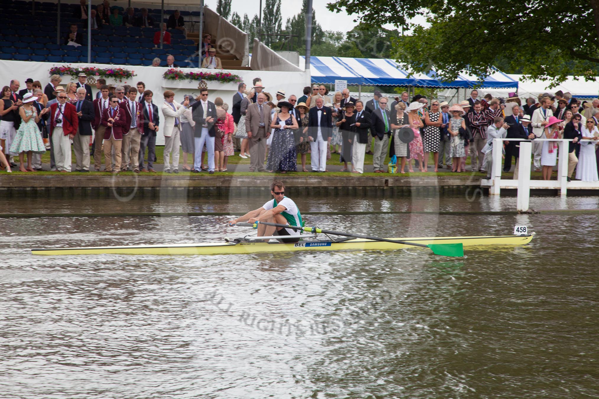Henley Royal Regatta 2012 (Thursday): Race 35, Diamond Challenge Sculls: Cambridge Boat Club (456, Bucks) v Koninklijke Roei en Nautische Sport Oostende, Belgium (458, Berks). River Thames beteen Henley-on-Thames and Remenham/Temple Island , Henley-on-Thames, Oxfordshire, United Kingdom, on 28 June 2012 at 12:28, image #248