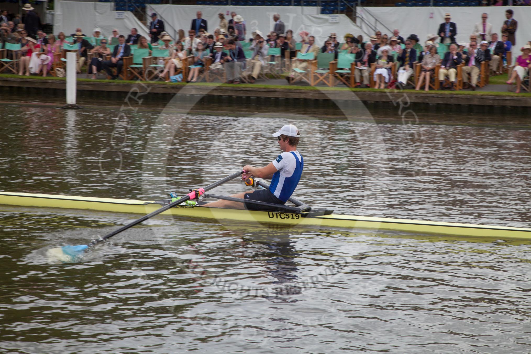 Henley Royal Regatta 2012 (Thursday): Race 35, Diamond Challenge Sculls: Cambridge Boat Club (456, Bucks) v Koninklijke Roei en Nautische Sport Oostende, Belgium (458, Berks). River Thames beteen Henley-on-Thames and Remenham/Temple Island , Henley-on-Thames, Oxfordshire, United Kingdom, on 28 June 2012 at 12:28, image #251