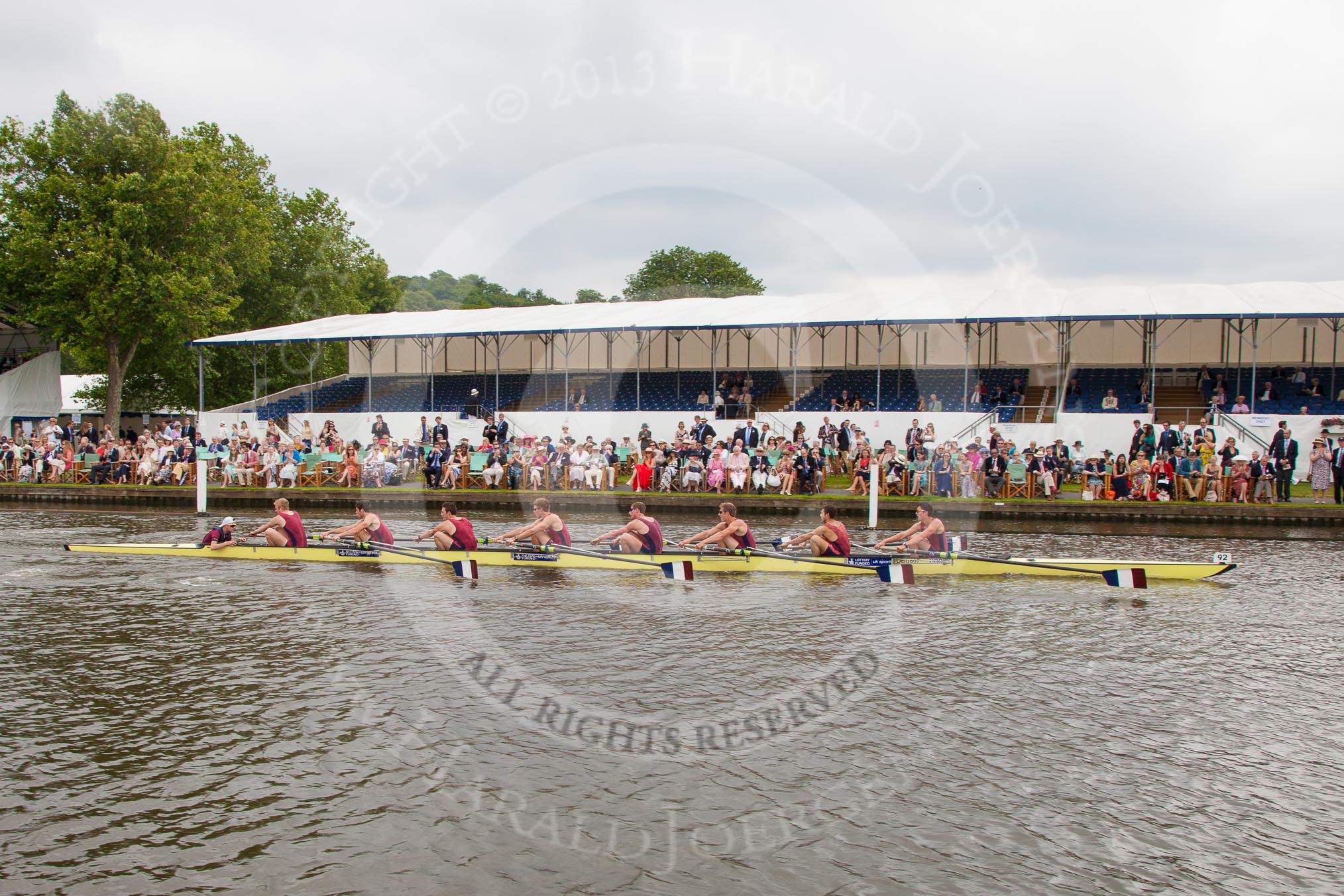 Henley Royal Regatta 2012 (Thursday): Race 36, Temple Challenge Cup: University College, London (106, Bucks) v Oxford Brookes University 'A' (92, Berks). River Thames beteen Henley-on-Thames and Remenham/Temple Island , Henley-on-Thames, Oxfordshire, United Kingdom, on 28 June 2012 at 14:05, image #256
