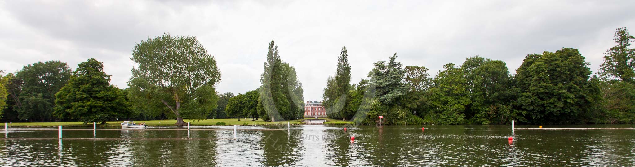 Henley Royal Regatta 2013 (Monday): The HRR race course seen from the south - the start is at the two pontoons on the left of Temple Island.. River Thames between Henley and Temple Island, Henley-on-Thames, Berkshire, United Kingdom, on 01 July 2013 at 15:08, image #29