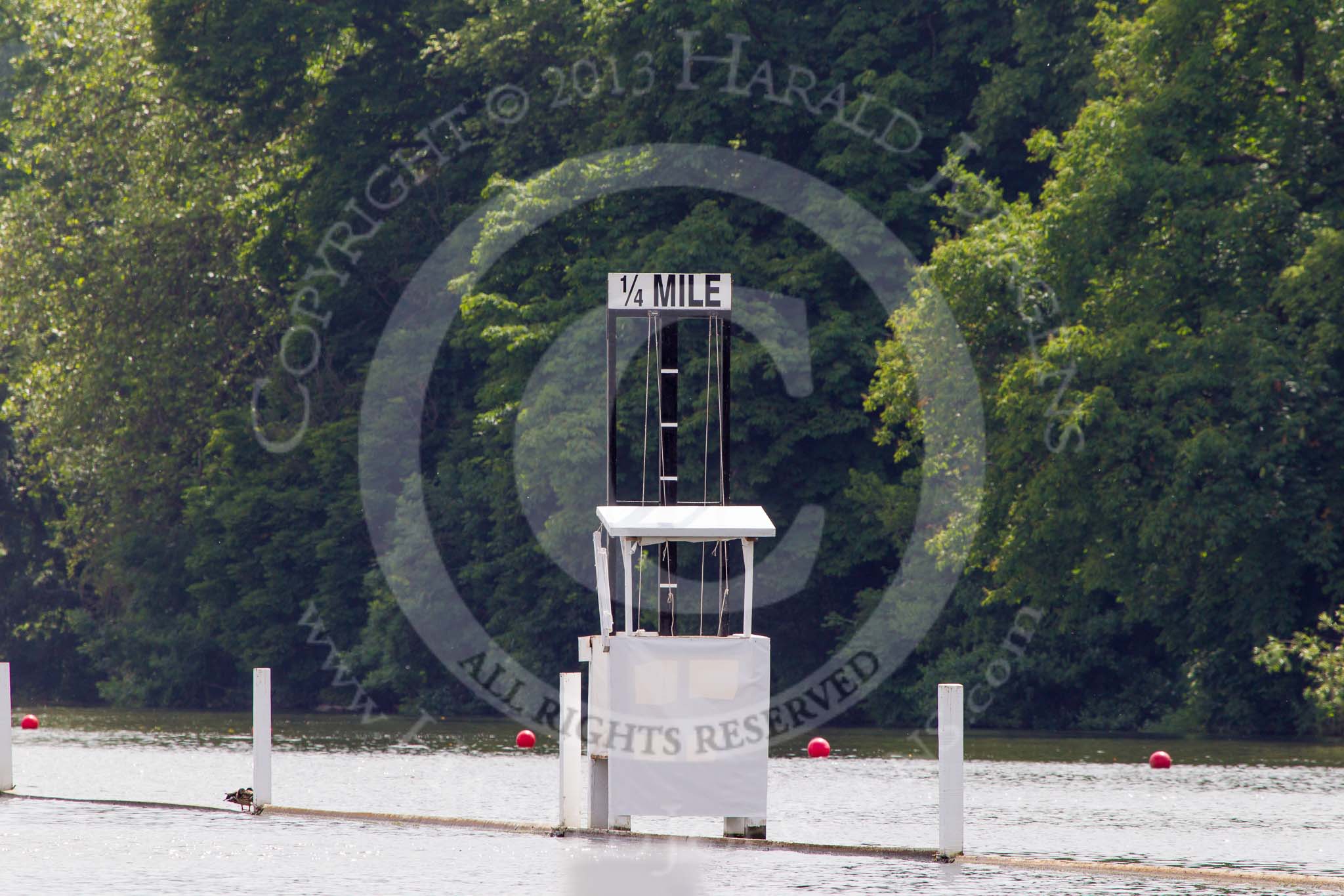 Henley Royal Regatta 2013 (Monday): The 1/3 mile marker, perhaps a slighty lonely place to work during the regatta.. River Thames between Henley and Temple Island, Henley-on-Thames, Berkshire, United Kingdom, on 01 July 2013 at 15:02, image #26