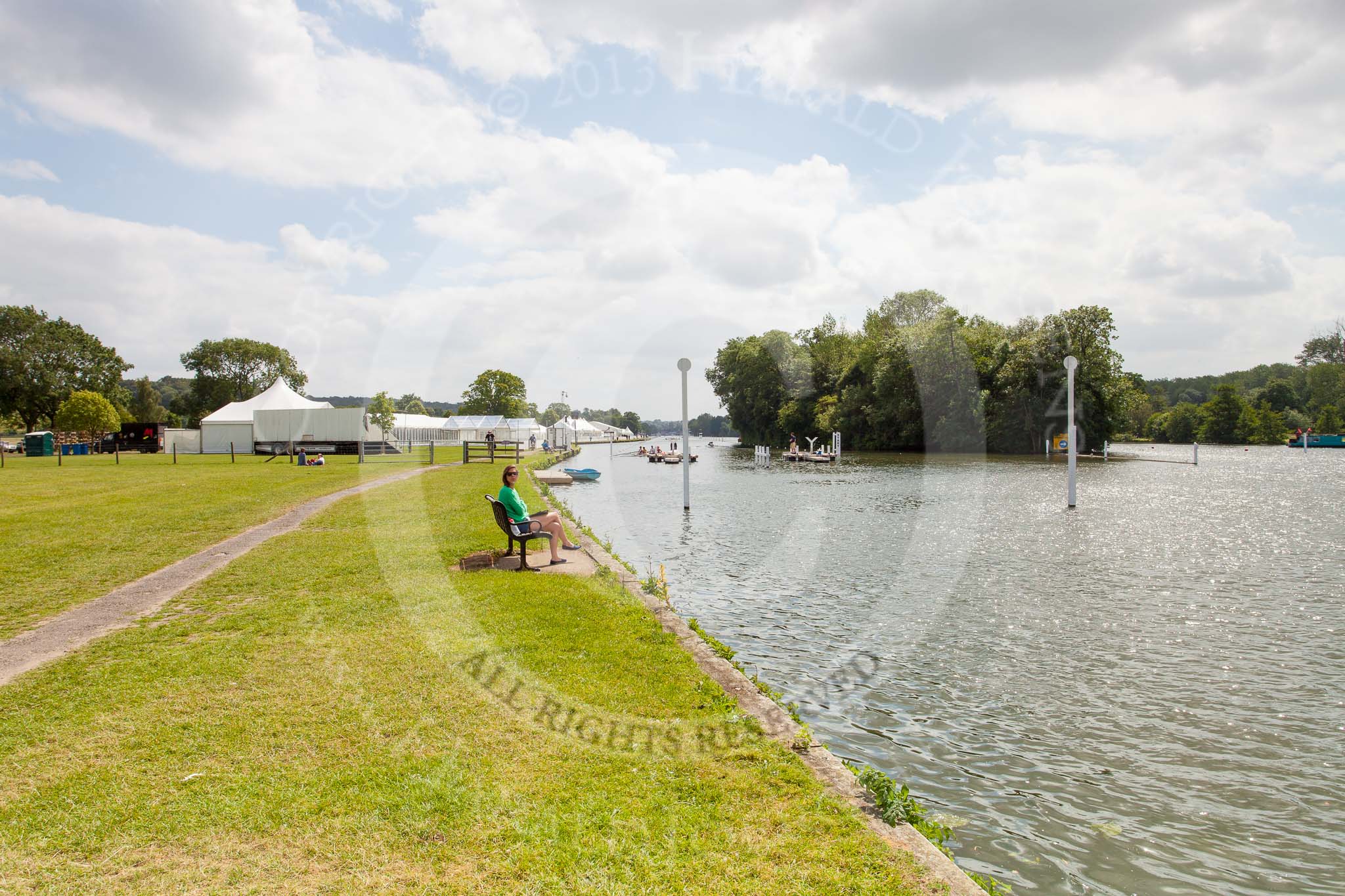 Henley Royal Regatta 2013 (Monday): The start of the HRR race course, seen from about 100 yards upstream.. River Thames between Henley and Temple Island, Henley-on-Thames, Berkshire, United Kingdom, on 01 July 2013 at 15:02, image #28