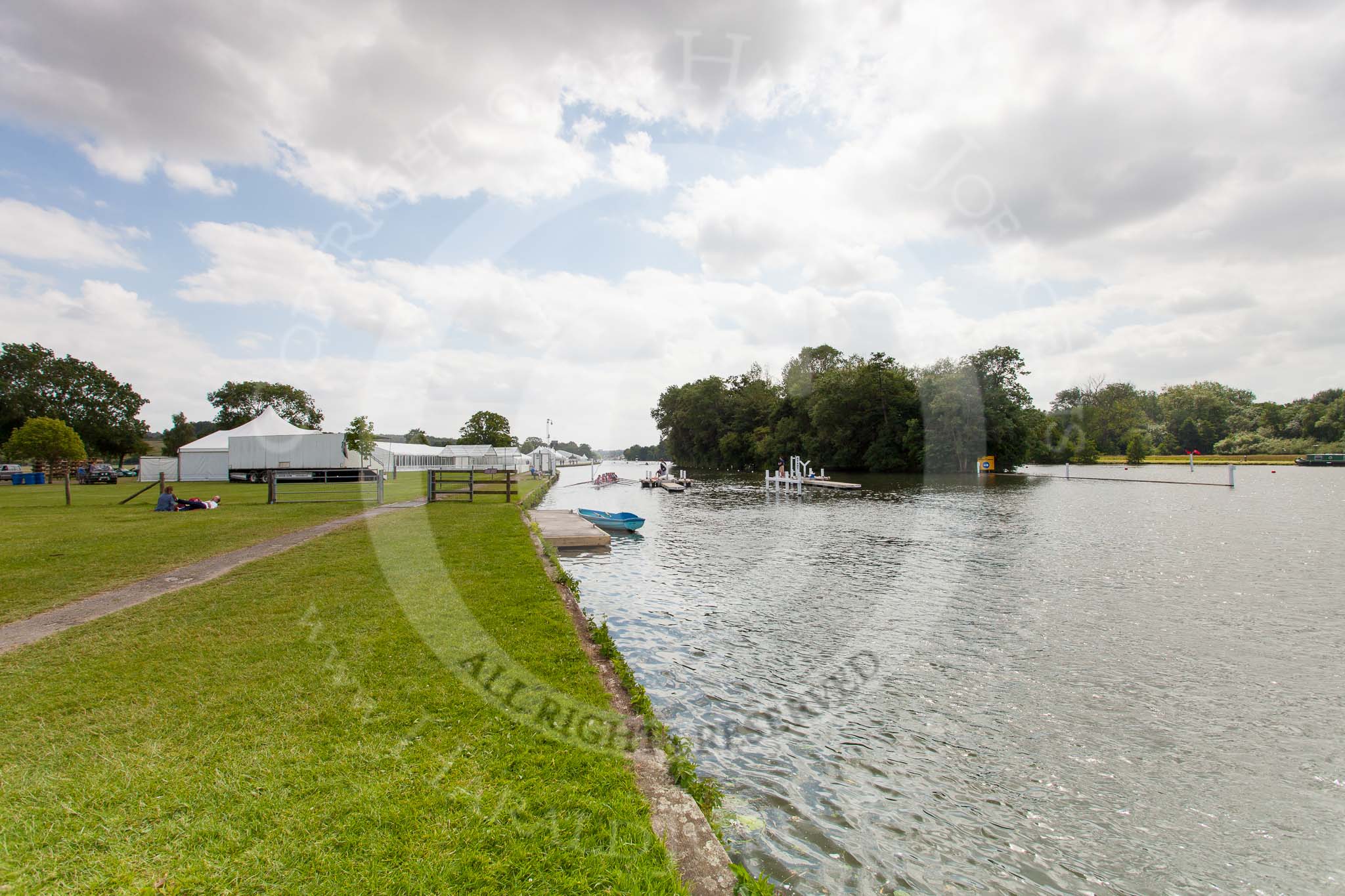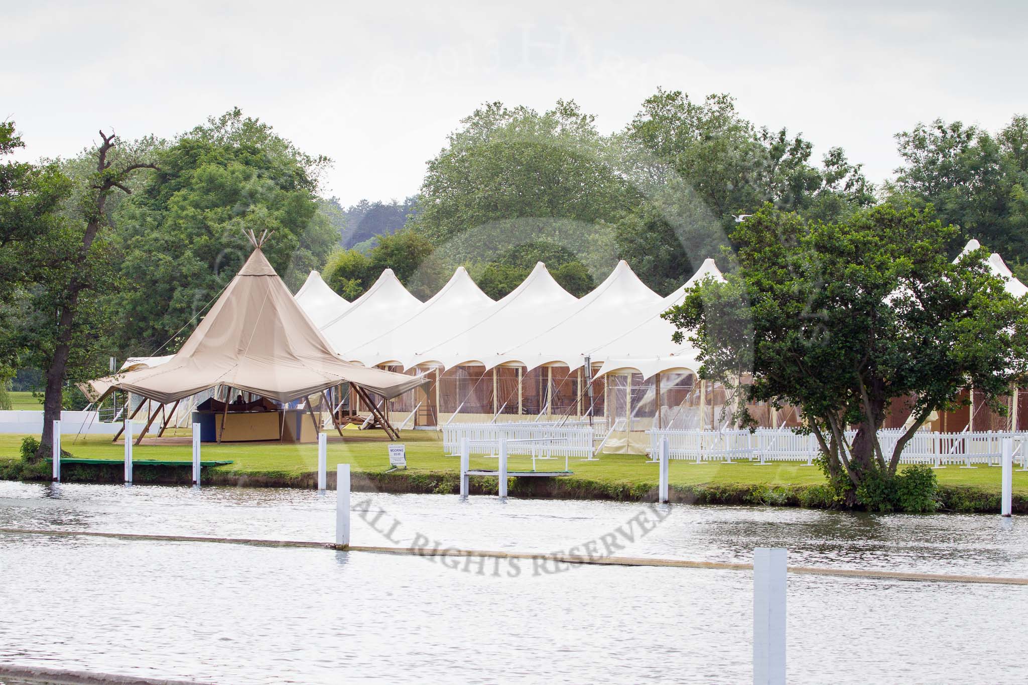 Henley Royal Regatta 2013 (Monday): Preparations for the regatta - tents on the eastern side of the Thames.. River Thames between Henley and Temple Island, Henley-on-Thames, Berkshire, United Kingdom, on 01 July 2013 at 15:41, image #41