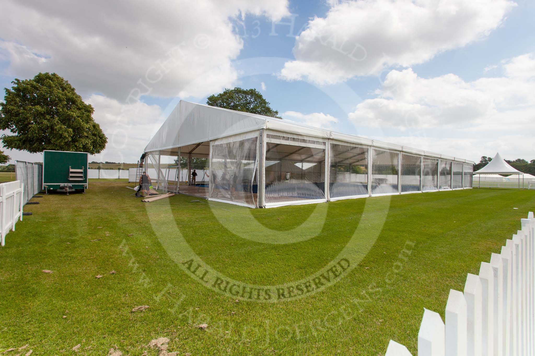 Henley Royal Regatta 2013 (Monday): Preparations for the regatta - Hospitality on the western (Phyllis Court) side of the Thames.. River Thames between Henley and Temple Island, Henley-on-Thames, Berkshire, United Kingdom, on 01 July 2013 at 15:36, image #40