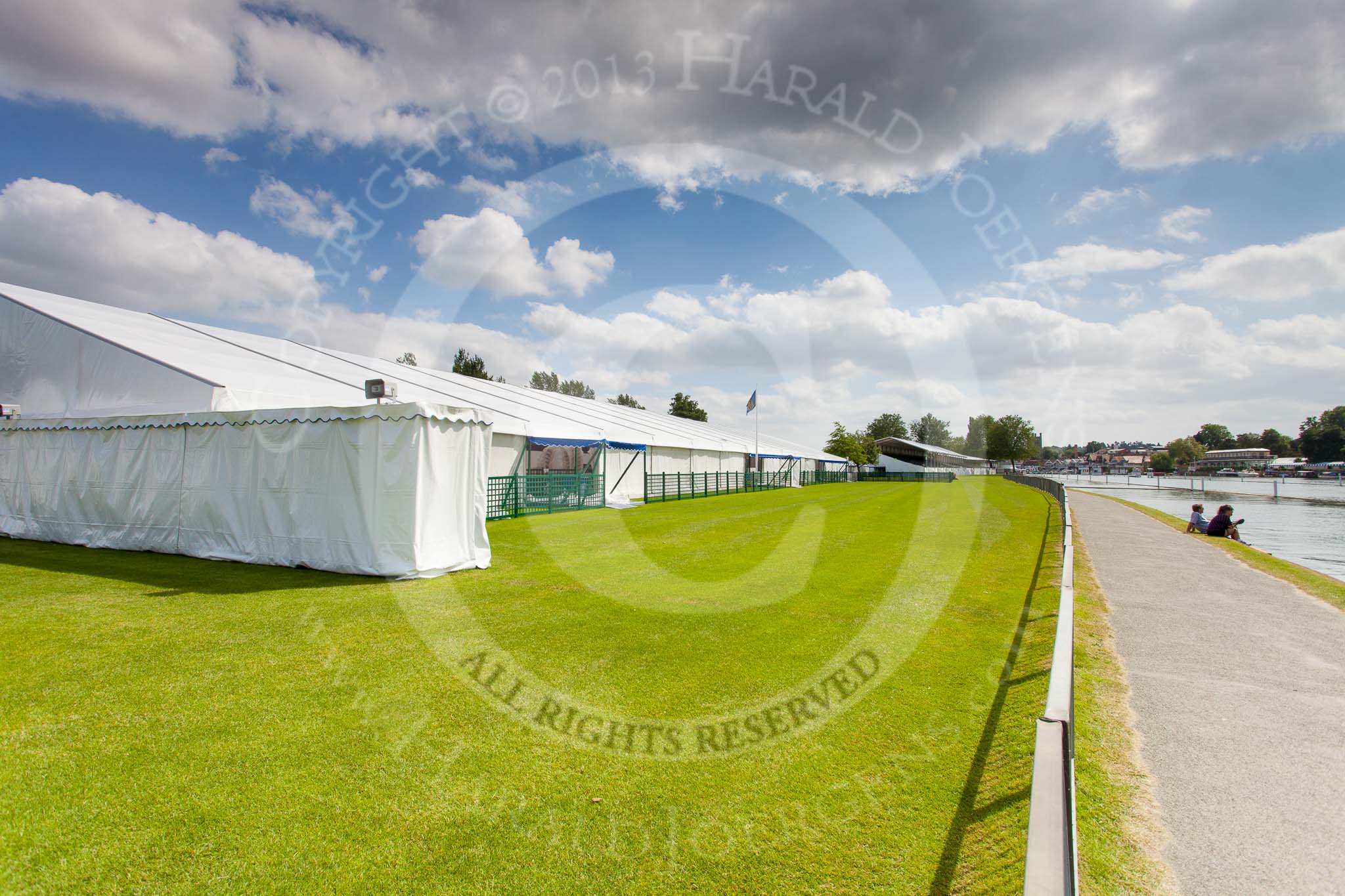 Henley Royal Regatta 2013 (Monday): Preparations for the regatta - tents on the eastern side of the Thames.. River Thames between Henley and Temple Island, Henley-on-Thames, Berkshire, United Kingdom, on 01 July 2013 at 15:19, image #37