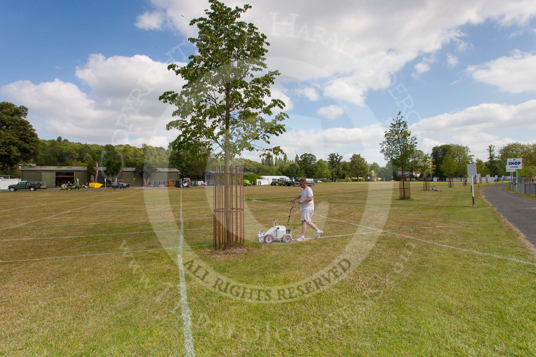 Henley Royal Regatta 2013 (Monday): Preparations for the regatta - marking the parking spaces at Lion Meadow.. River Thames between Henley and Temple Island, Henley-on-Thames, Berkshire, United Kingdom, on 01 July 2013 at 15:55, image #44