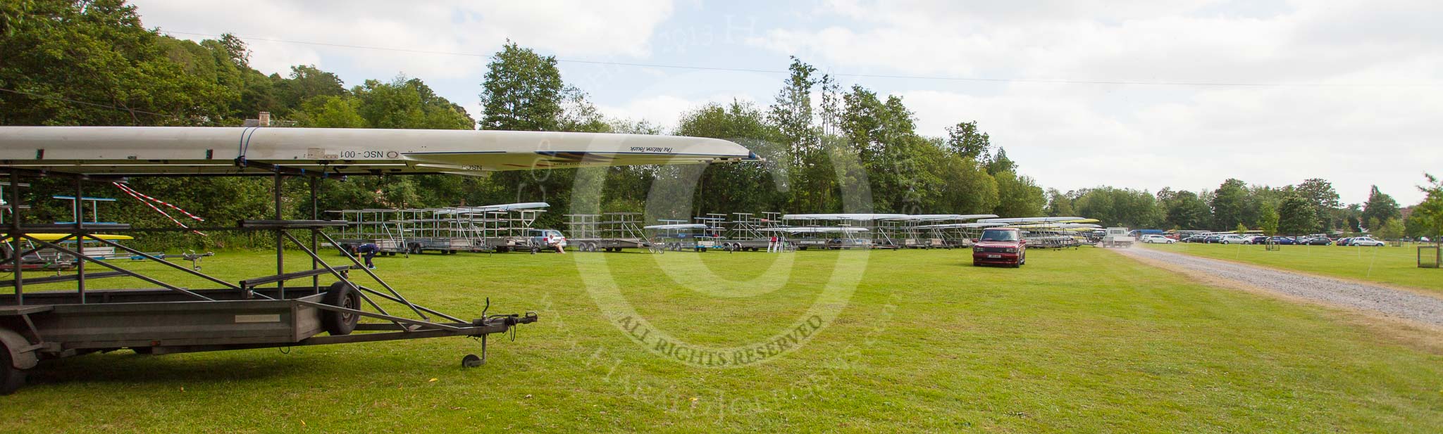 Henley Royal Regatta 2013 (Monday): The boat area of one of the huge HRR car parks.. River Thames between Henley and Temple Island, Henley-on-Thames, Berkshire, United Kingdom, on 01 July 2013 at 15:58, image #45