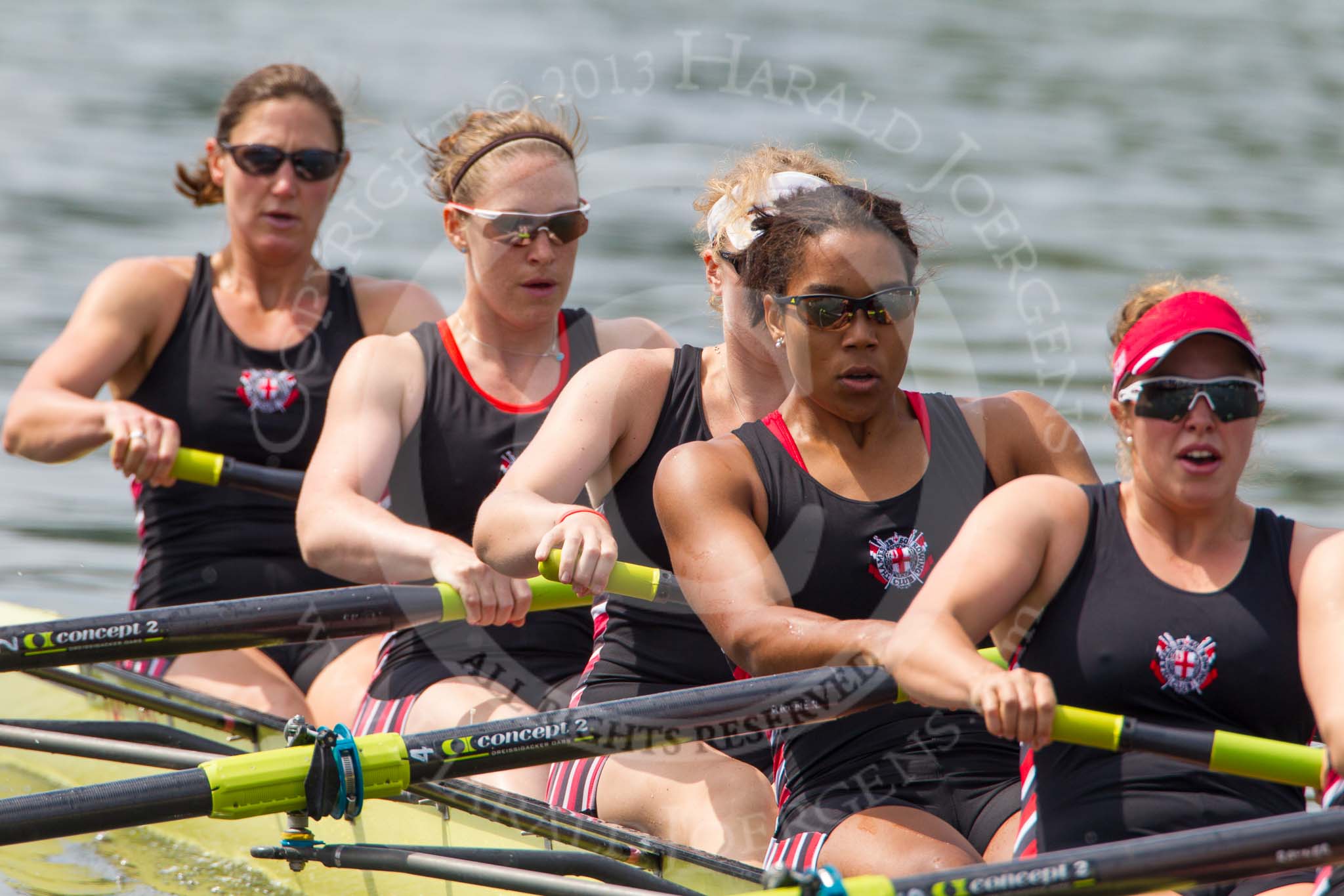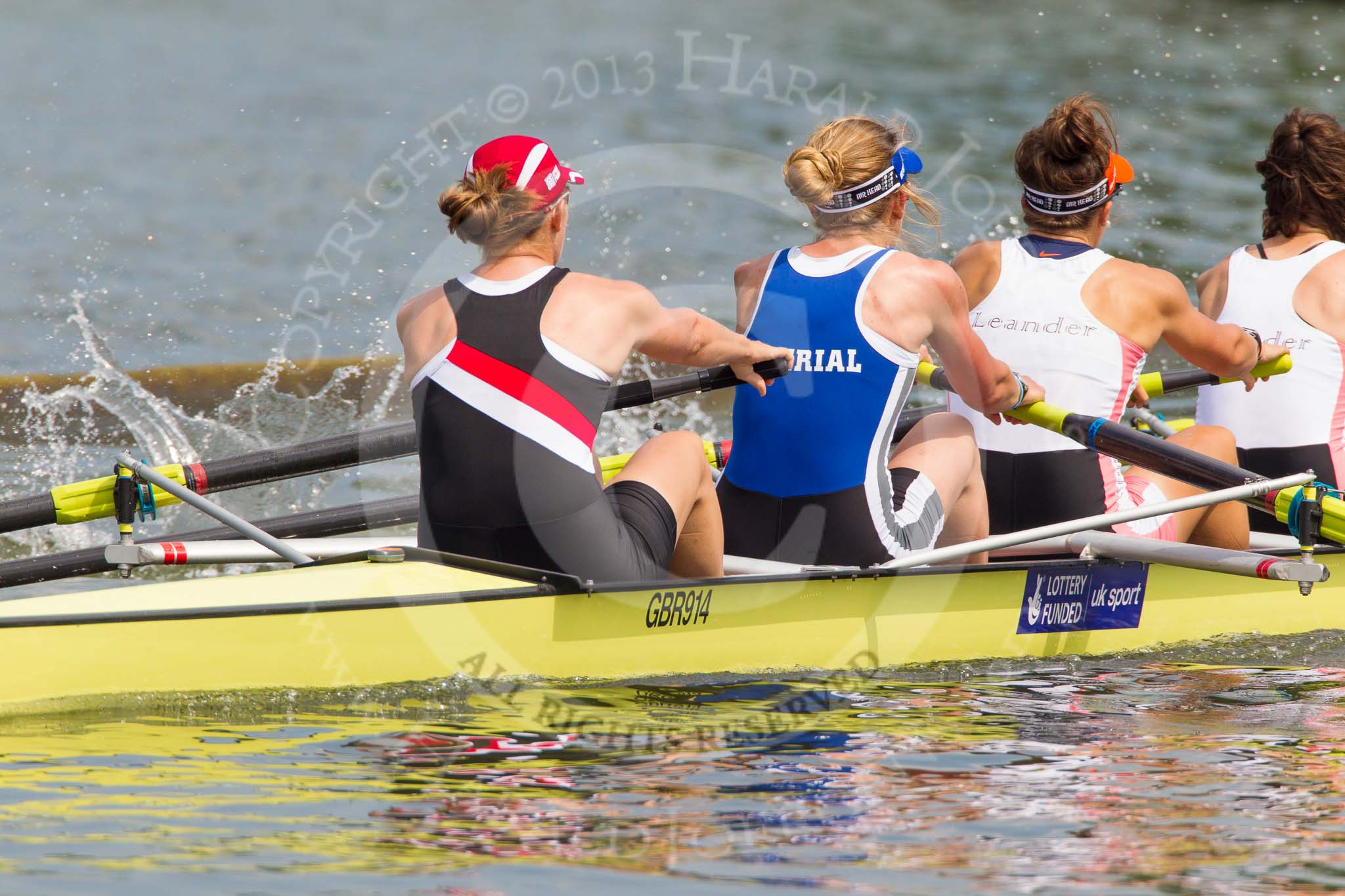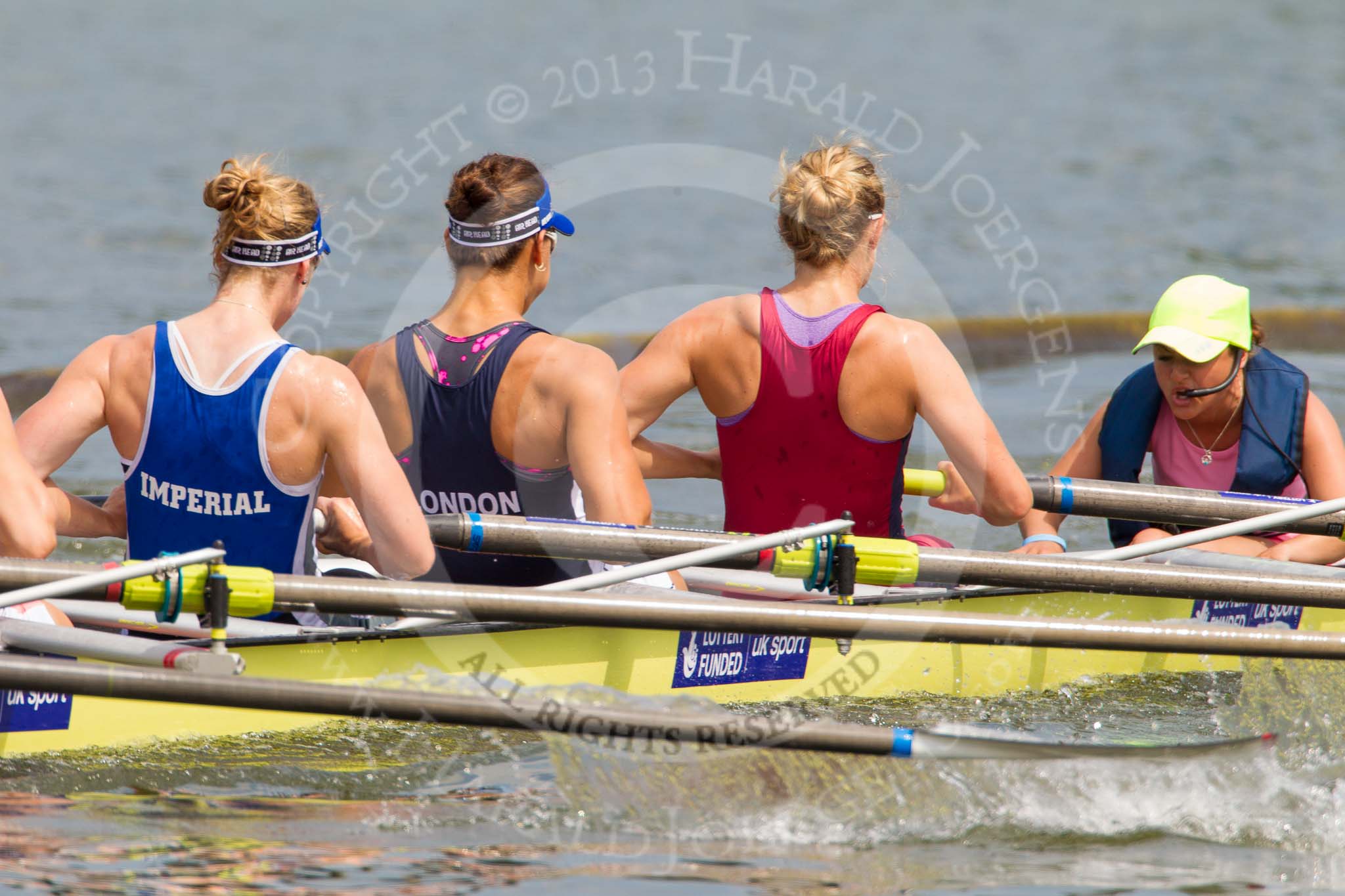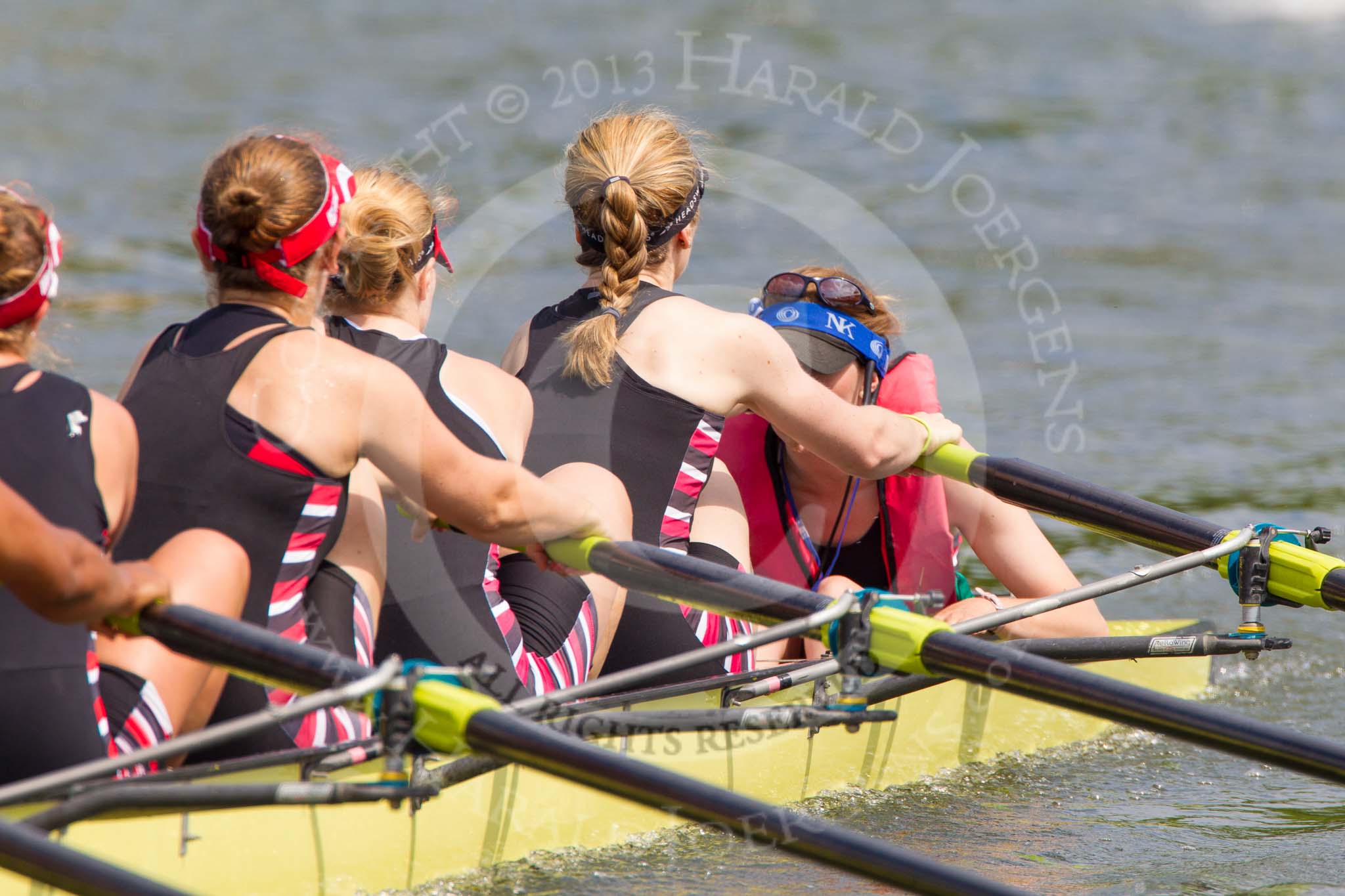 Henley Royal Regatta 2013, Saturday: Race No. 10 for the Remenham Challenge Cup, Leander Club and Oxford Brookes University v Thames Rowing Club, here cox E. H. B. Searle. Image #203, 06 July 2013 11:32 River Thames, Henley on Thames, UK
