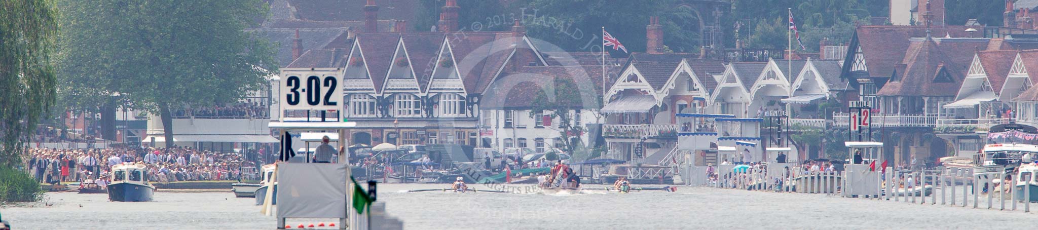 Henley Royal Regatta 2013, Saturday: Looking down towards the finish of the race course, on the left the Stewards' Enclosure. Image #287, 06 July 2013 12:15 River Thames, Henley on Thames, UK