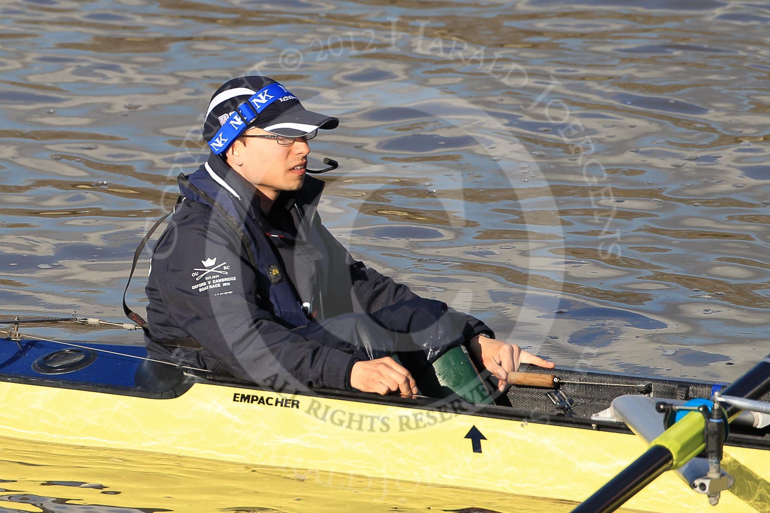 The Boat Race season 2012 - fixture OUBC vs German U23: Cox in the German U23 boat - Oxford's hopeful Oskar Zorilla.. River Thames between Putney and Mortlake, London, United Kingdom, on 26 February 2012 at 14:47, image #17