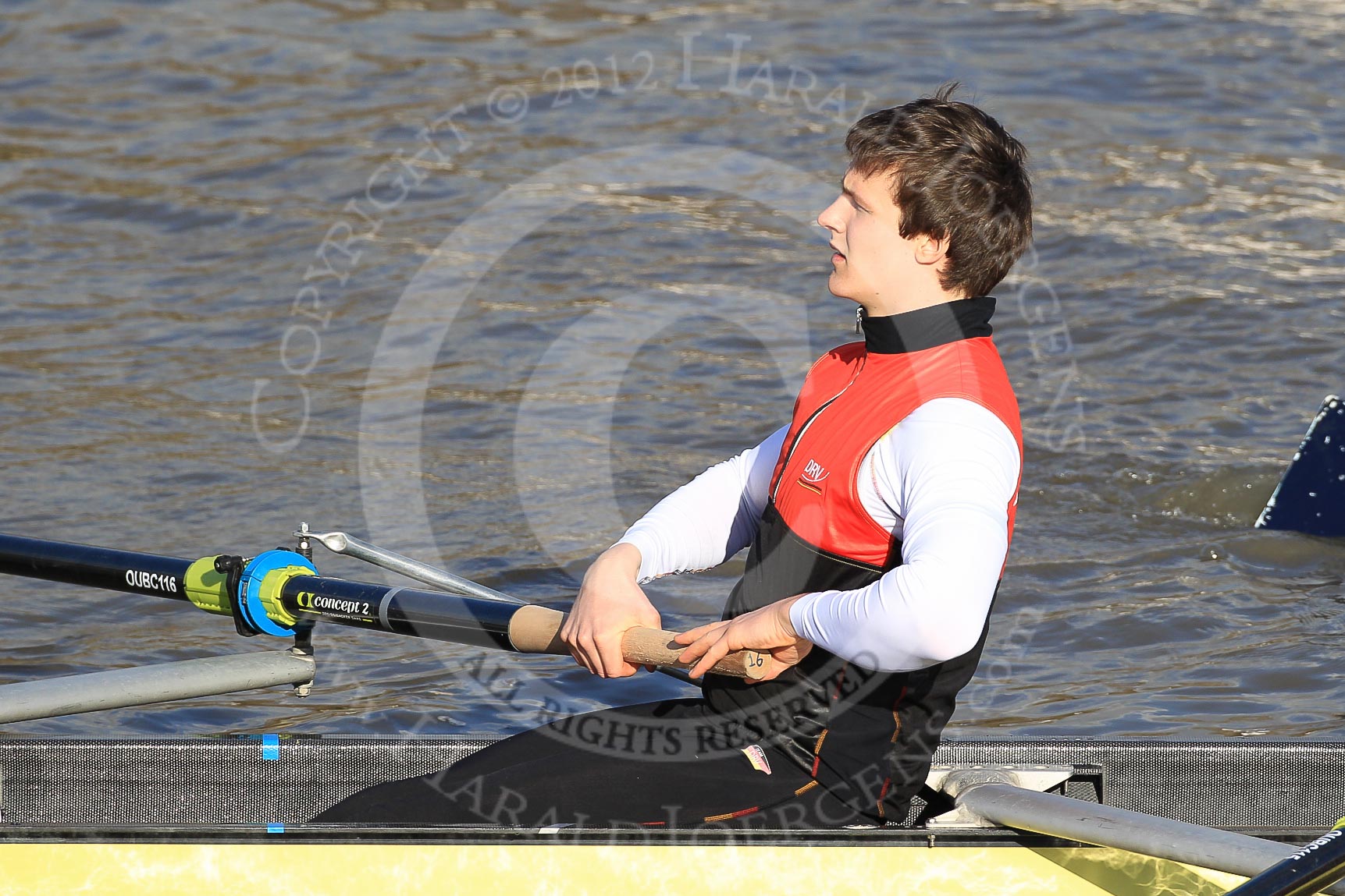 The Boat Race season 2012 - fixture OUBC vs German U23: #6 in the German U23 boat - Maximilian Planer. Maximilian is studying journalism at the Technical University Dortmund.. River Thames between Putney and Mortlake, London, United Kingdom, on 26 February 2012 at 14:48, image #22