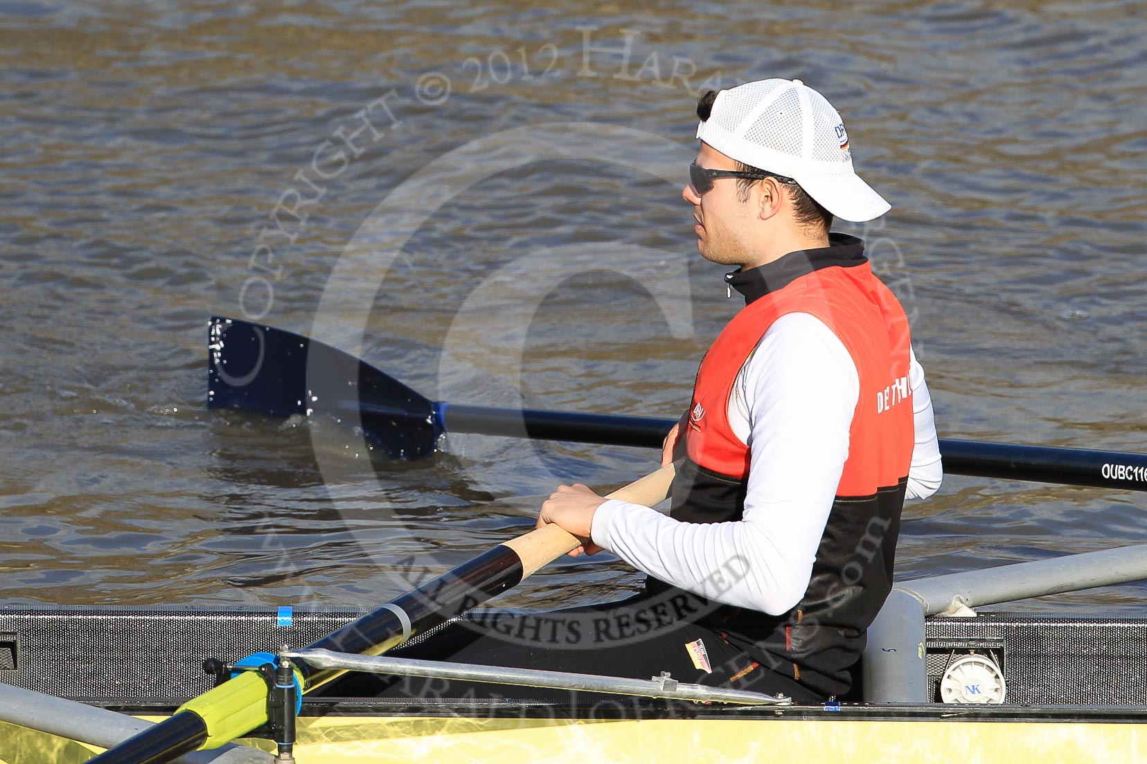 The Boat Race season 2012 - fixture OUBC vs German U23: #4 in the German U23 boat - Alexander Thierfelder. Alexander studies Chemical Engineering at the Technical University Dortmund.. River Thames between Putney and Mortlake, London, United Kingdom, on 26 February 2012 at 14:48, image #20