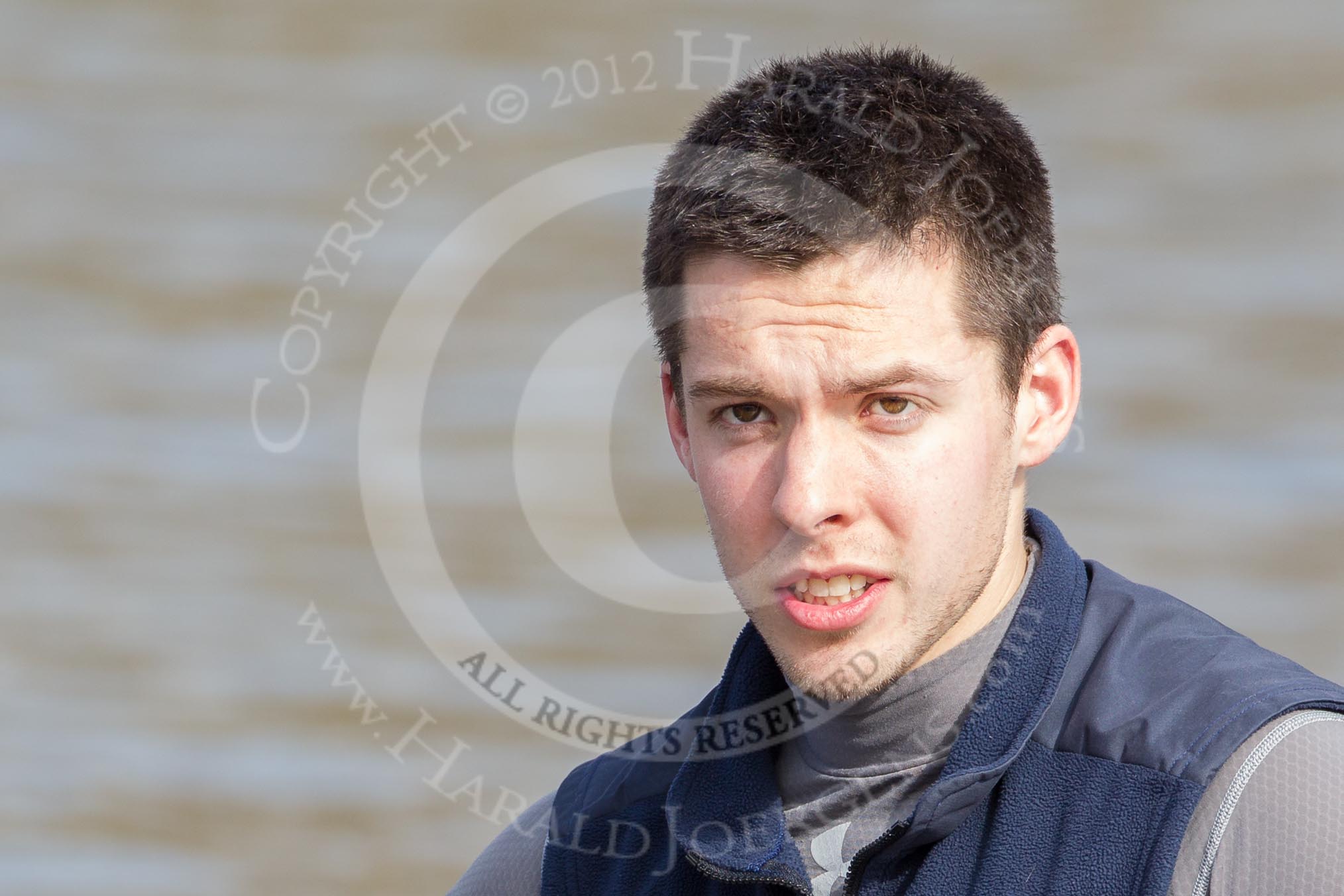 The Boat Race season 2012 - fixture CUBC vs Leander: Close-up of OUBC 3 seat Kevin Baum.. River Thames between Putney and Molesey, London, Greater London, United Kingdom, on 10 March 2012 at 13:05, image #8