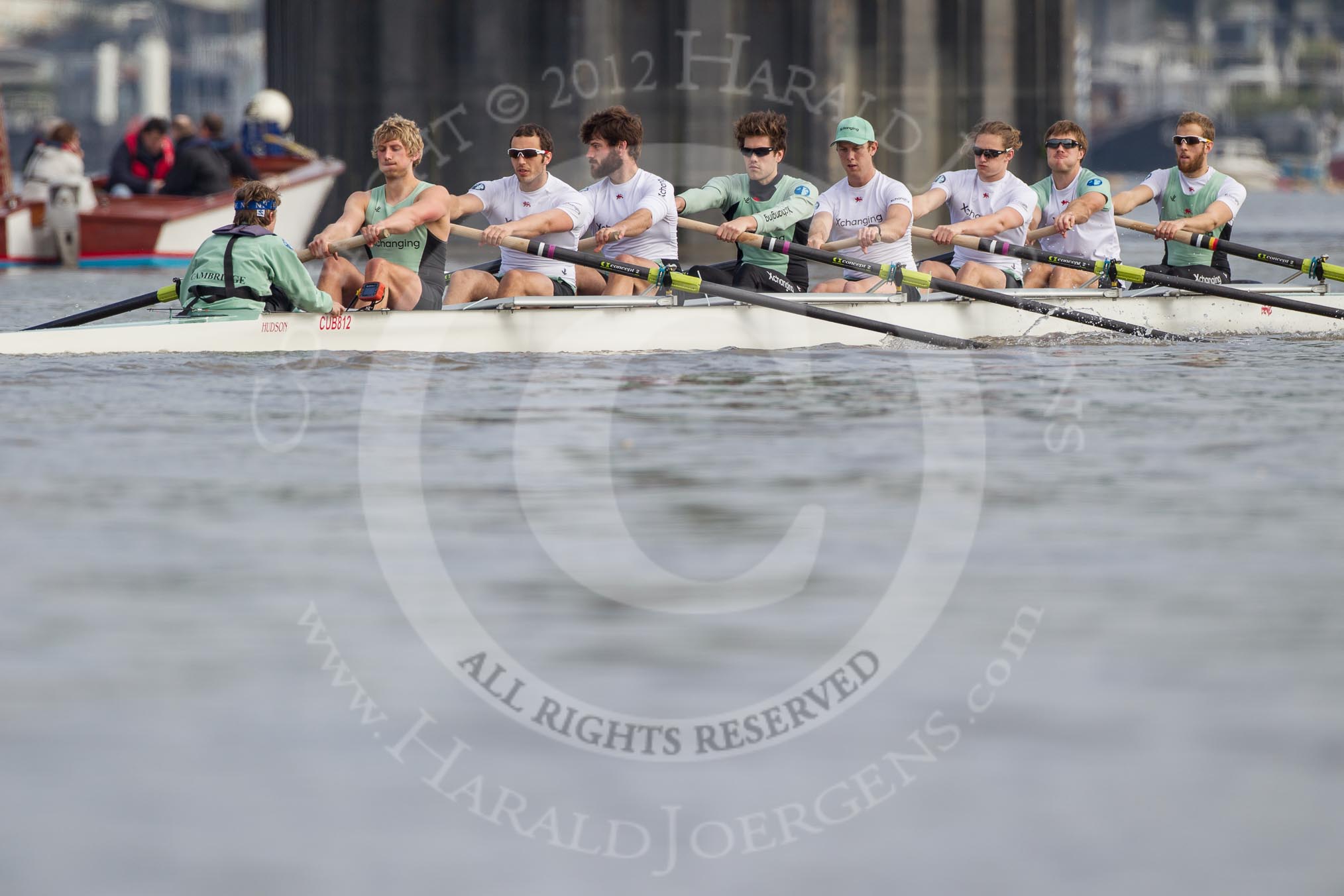 The Boat Race season 2012 - fixture CUBC vs Leander: CUBC Blue Boat: Cox Ed Bosson, stroke Niles Garratt, Alex Ross, Steve Dudek, Alexander Scharp, Jack Lindeman, Mike Thorp, David Nelson, and bow Moritz Schramm.. River Thames between Putney and Molesey, London, Greater London, United Kingdom, on 10 March 2012 at 14:04, image #66