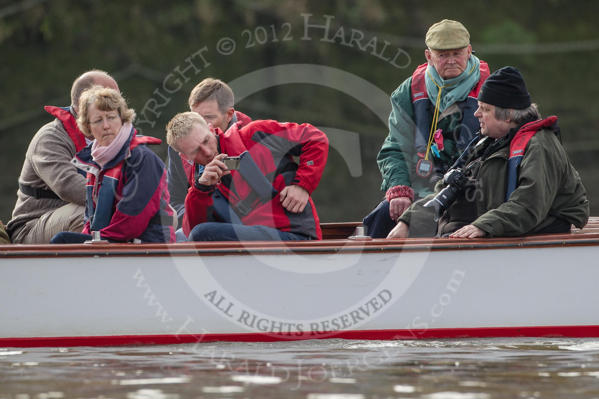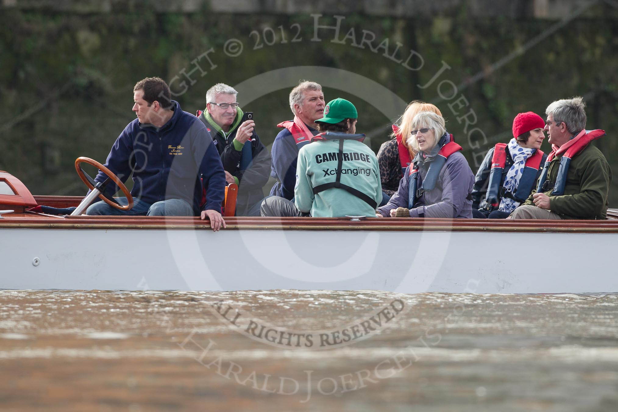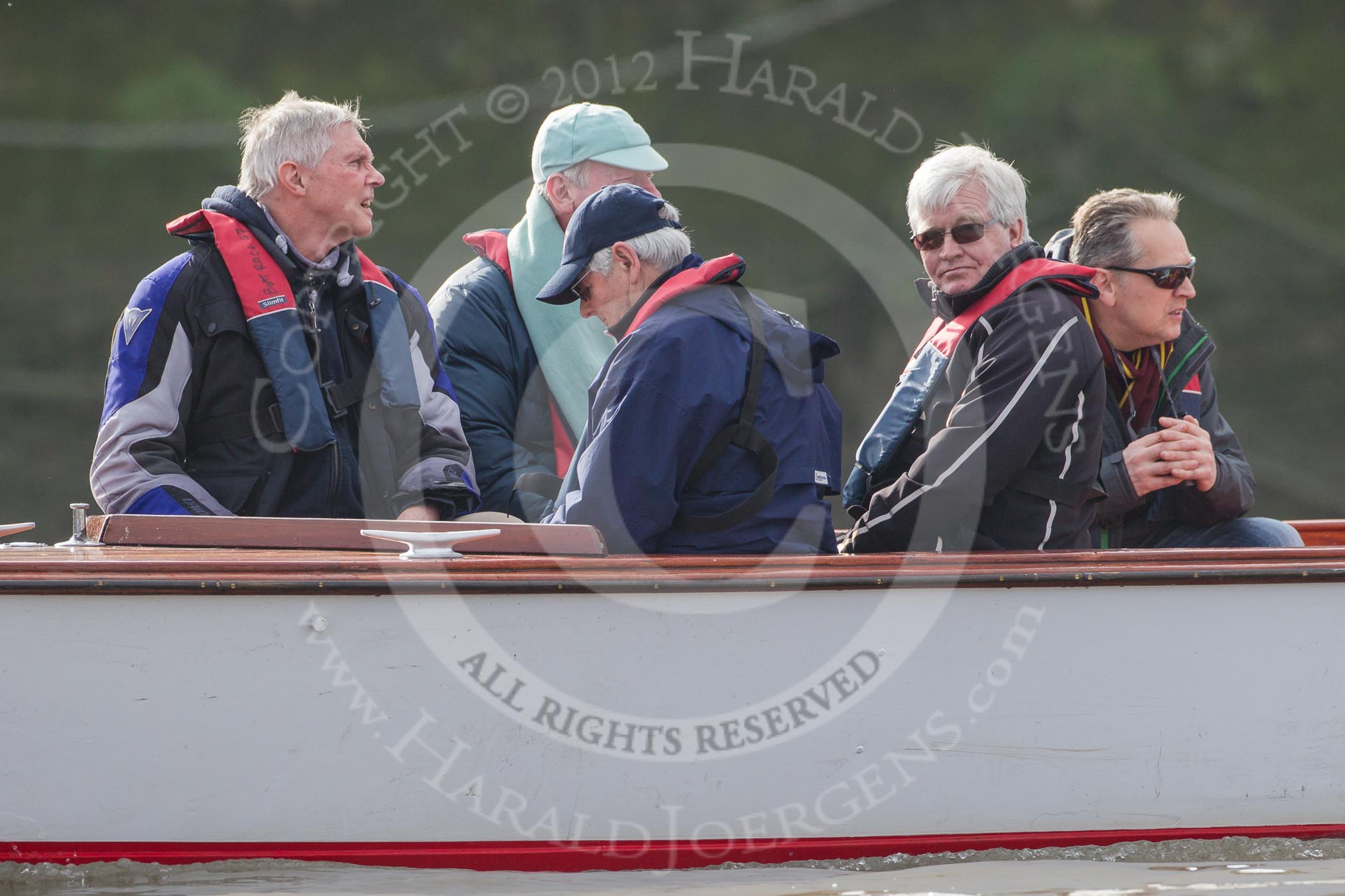 The Boat Race season 2012 - fixture CUBC vs Leander: Cambridge alumni watching the race.. River Thames between Putney and Molesey, London, Greater London, United Kingdom, on 10 March 2012 at 14:09, image #82