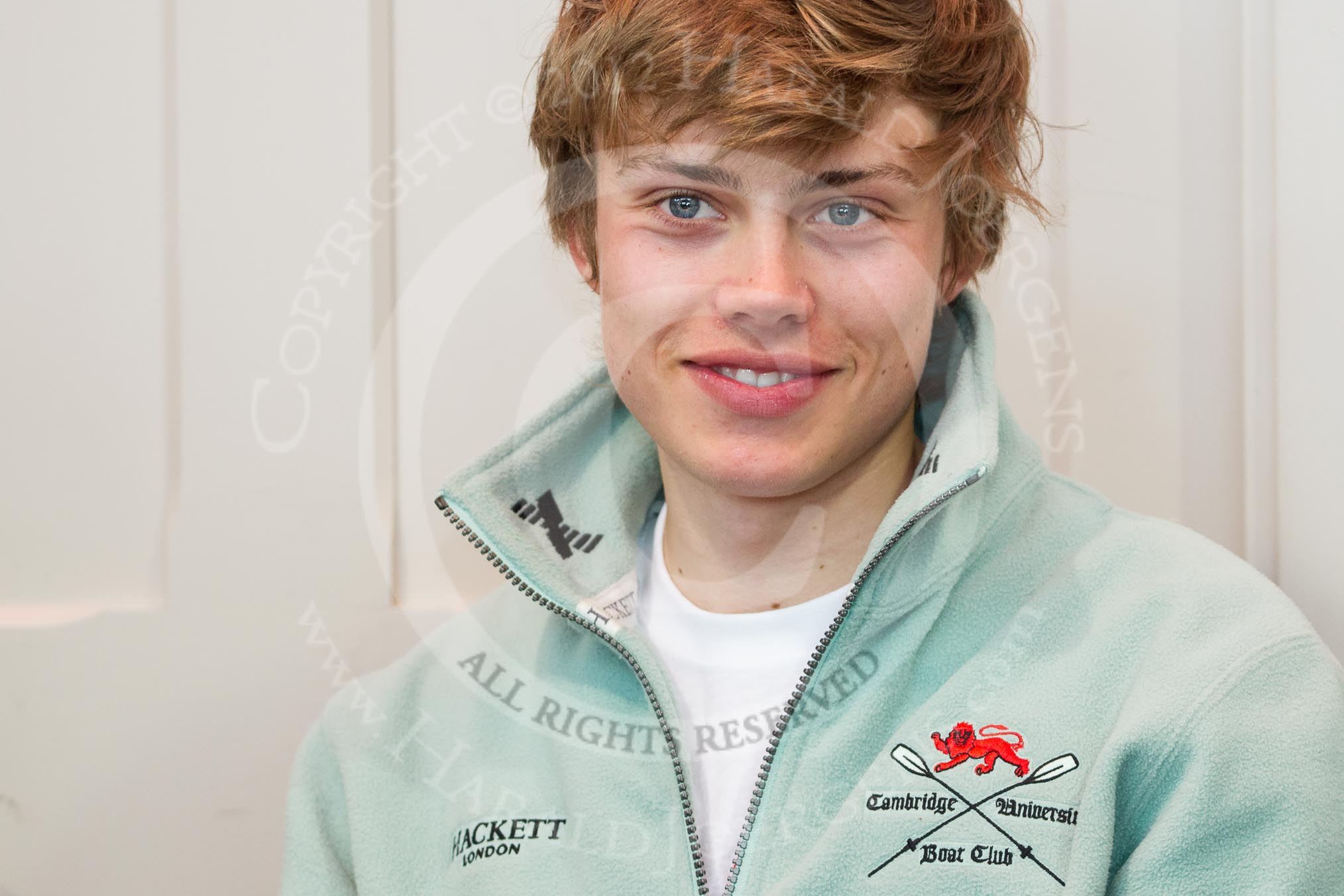 - Cambridge University Boat Club cox Ed Bosson during the press conference on April 5, 2012, at the BT Press Centre, two days before the 2012 Boat Race.