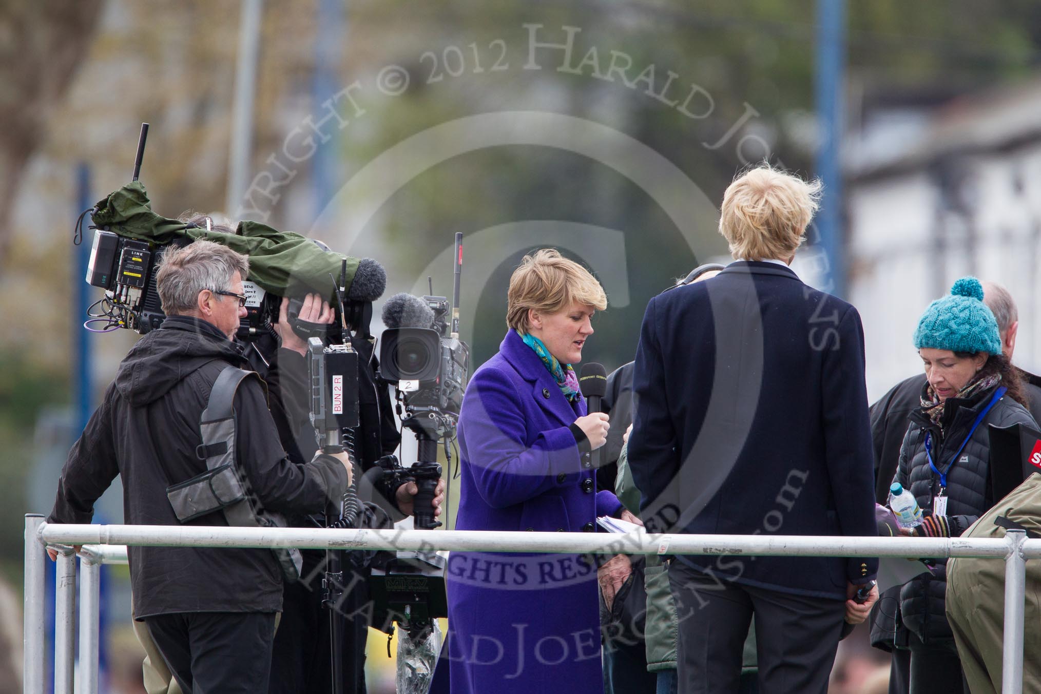 The Boat Race 2012: BBC presenter Clair Balding doing an interview just before the start of the 2012 Boat Race..