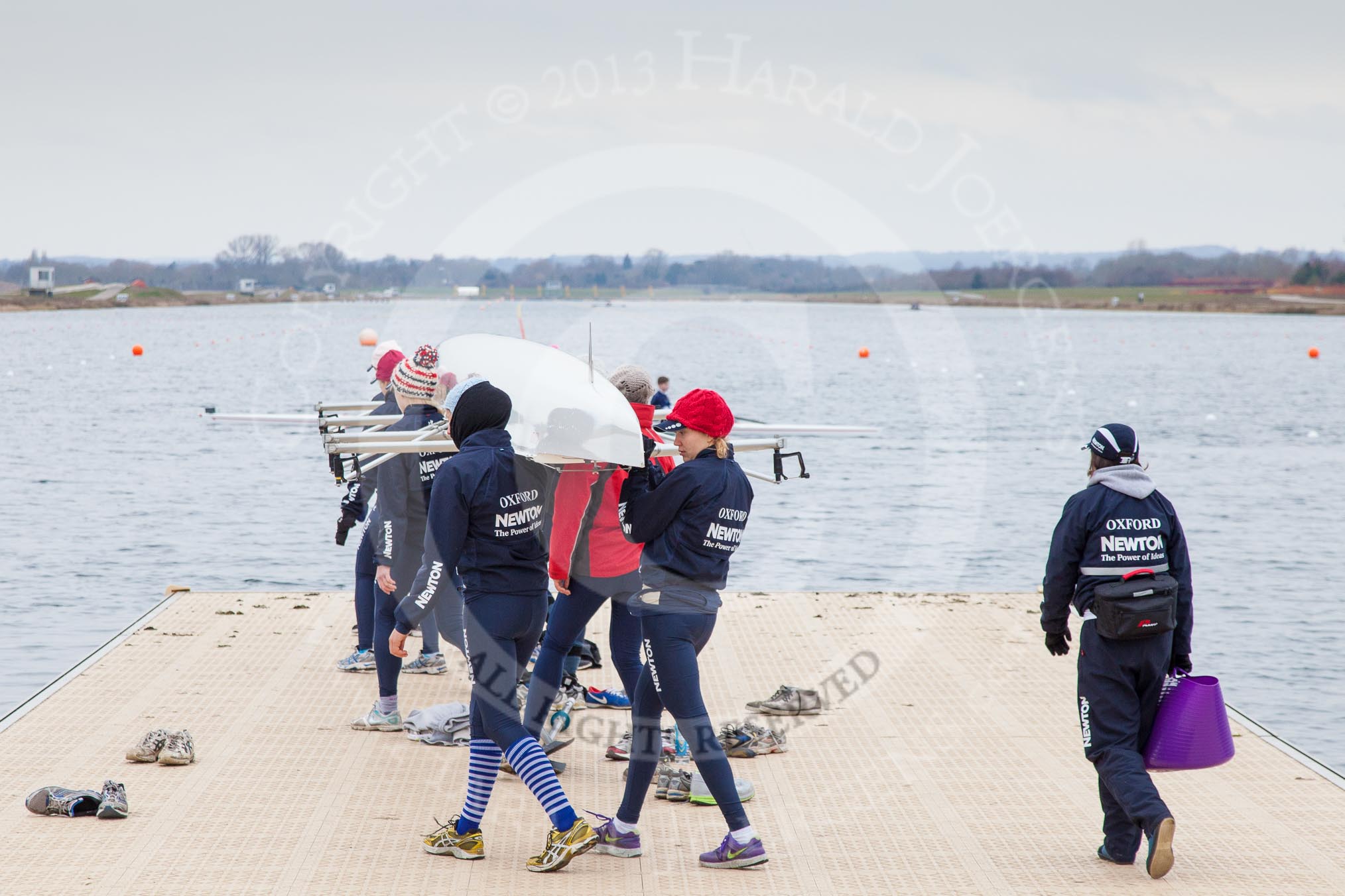 The Boat Race season 2013 - fixture OUWBC vs Molesey BC: Getting the OUWBC Blue Boat into Dorney Lake: Stroke Maxie Scheske, Anastasia Chitty, Harriet Keane, Amy Varney, Joanna Lee, Mary Foord Weston, Alice Carrington-Windo, Mariann Novak.. Dorney Lake, Dorney, Windsor, Berkshire, United Kingdom, on 24 February 2013 at 11:12, image #20