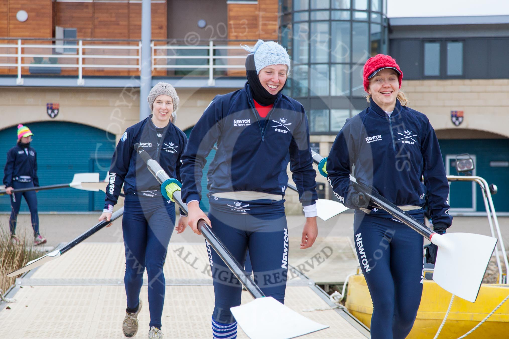 The Boat Race season 2013 - fixture OUWBC vs Molesey BC: OUWBC three, Mary Foord Weston, two, Alice Carrington-Windo and bow Mariann Novak.. Dorney Lake, Dorney, Windsor, Berkshire, United Kingdom, on 24 February 2013 at 11:14, image #28