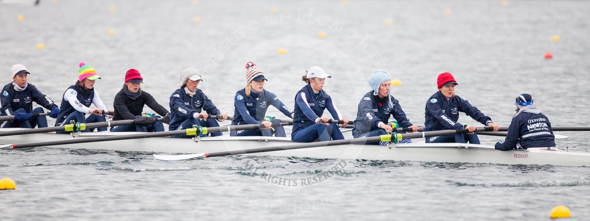 The Boat Race season 2013 - fixture OUWBC vs Molesey BC: The OUWBC Eight: Bow Mariann Novak, Alice Carrington-Windo, Mary Foord Weston, Joanna Lee, Amy Varney, Harriet Keane, Anastasia Chitty, stroke Maxie Scheske and cox Sophie Shawdon.. Dorney Lake, Dorney, Windsor, Berkshire, United Kingdom, on 24 February 2013 at 11:45, image #81