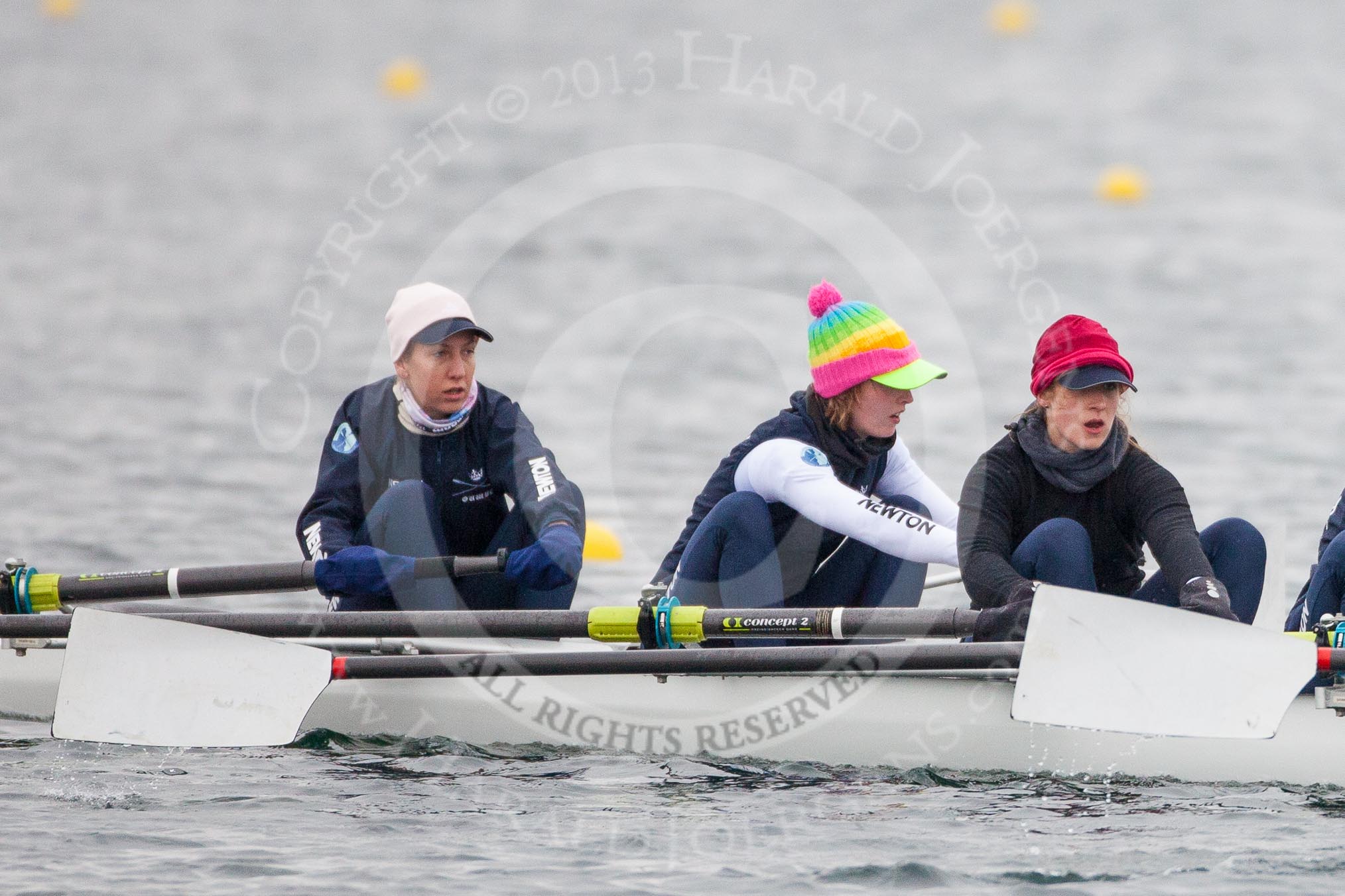 The Boat Race season 2013 - fixture OUWBC vs Molesey BC: OUWBC bow, Mariann Novak, two, Alice Carrington-Windo, three, Mary Foord Weston and four, Joanna Lee.. Dorney Lake, Dorney, Windsor, Berkshire, United Kingdom, on 24 February 2013 at 11:45, image #76