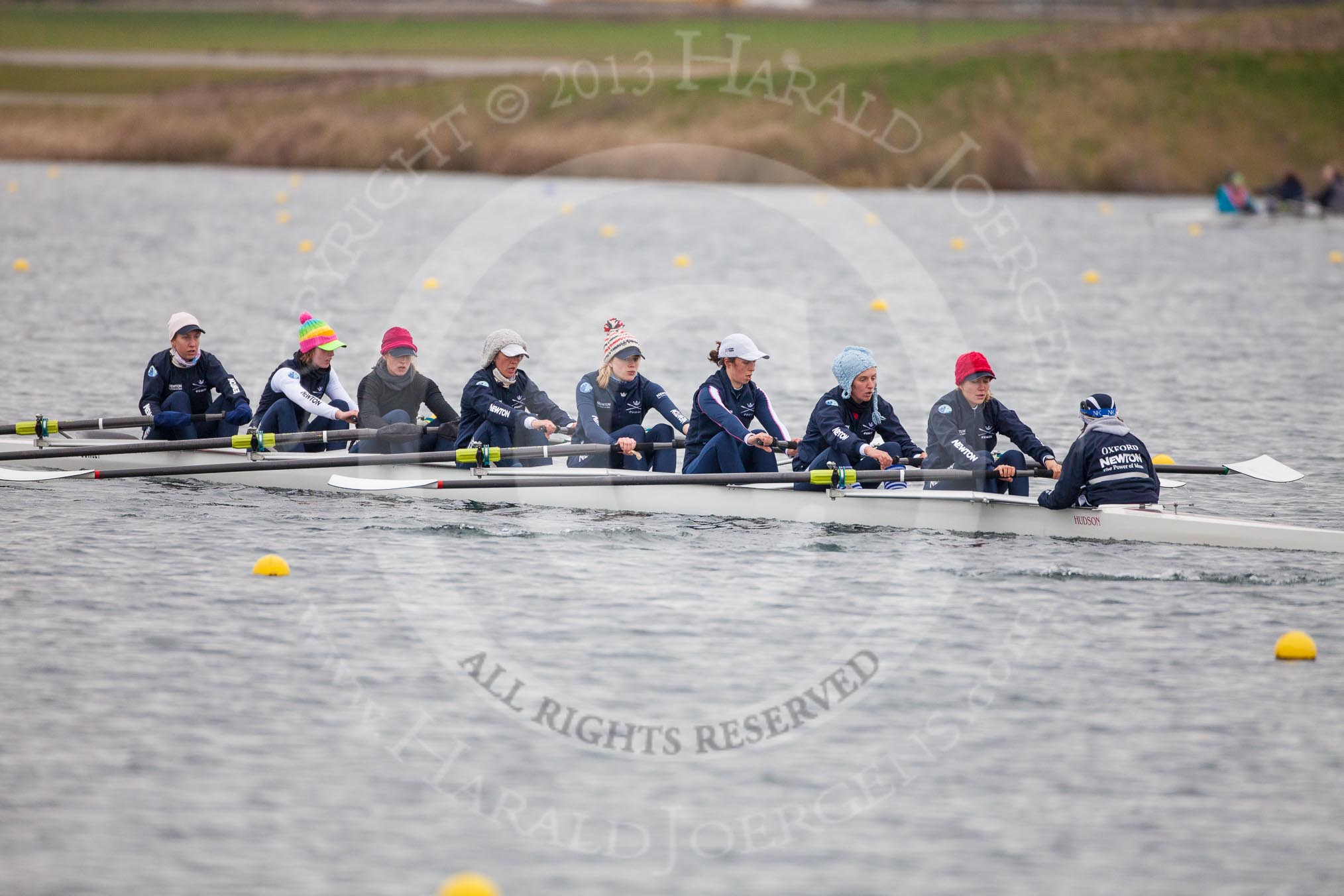 The Boat Race season 2013 - fixture OUWBC vs Molesey BC: The OUWBC Eight: Bow Mariann Novak, Alice Carrington-Windo, Mary Foord Weston, Joanna Lee, Amy Varney, Harriet Keane, Anastasia Chitty, stroke Maxie Scheske and cox Sophie Shawdon.. Dorney Lake, Dorney, Windsor, Berkshire, United Kingdom, on 24 February 2013 at 11:46, image #88