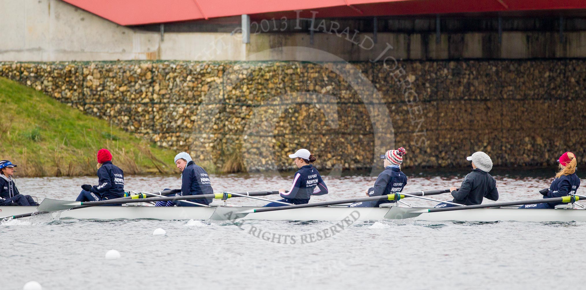 The Boat Race season 2013 - fixture OUWBC vs Molesey BC: OUWBC cox Sophie Shawdon, stroke Maxie Scheske, seven Anastasia Chitty, six Harriet Keane, five Amy Varney, four Joanna Lee, and three Mary Foord Weston.. Dorney Lake, Dorney, Windsor, Berkshire, United Kingdom, on 24 February 2013 at 11:23, image #44