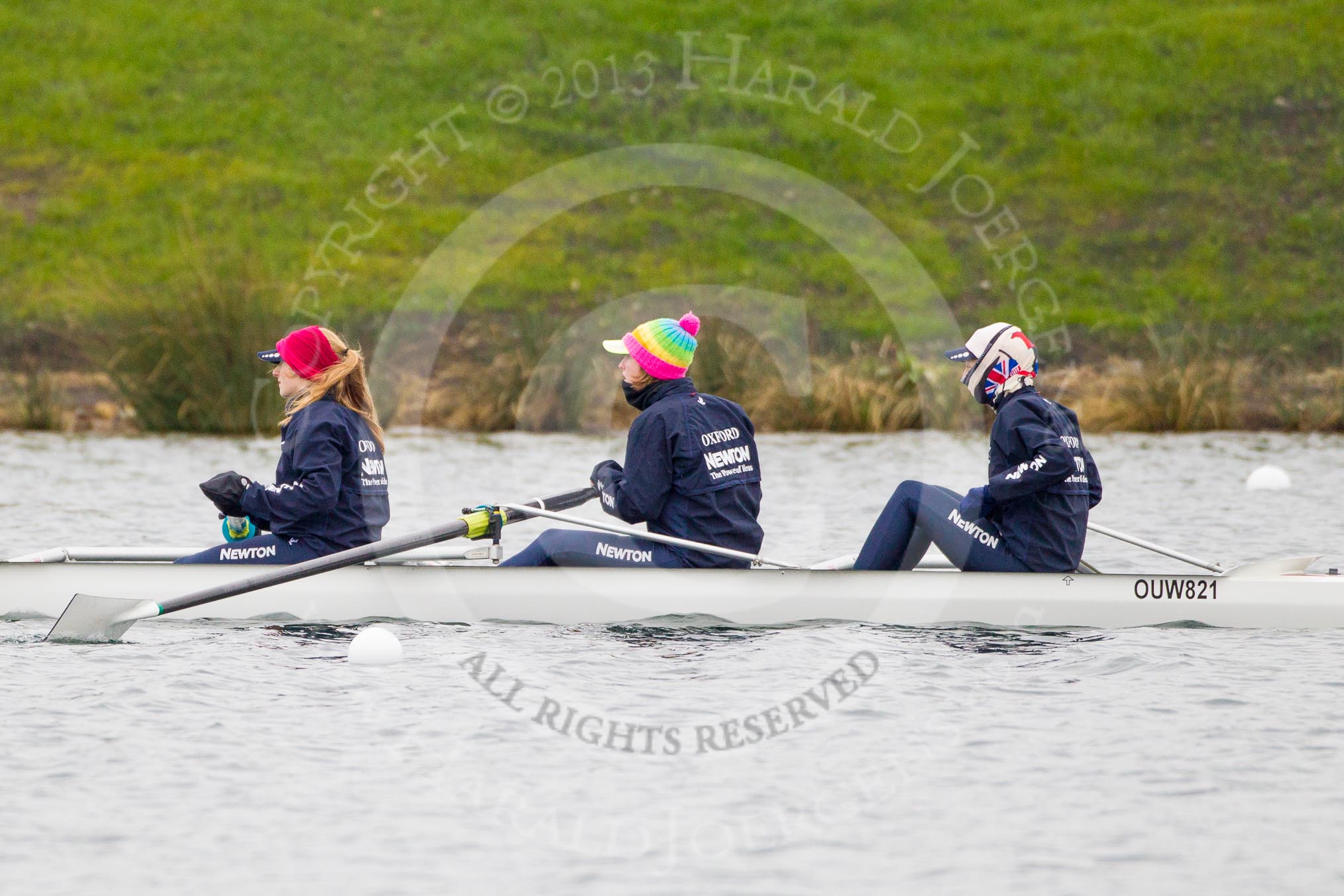 The Boat Race season 2013 - fixture OUWBC vs Molesey BC: OUWBC three, Mary Foord Weston, two, Alice Carrington-Windo and bow Mariann Novak..