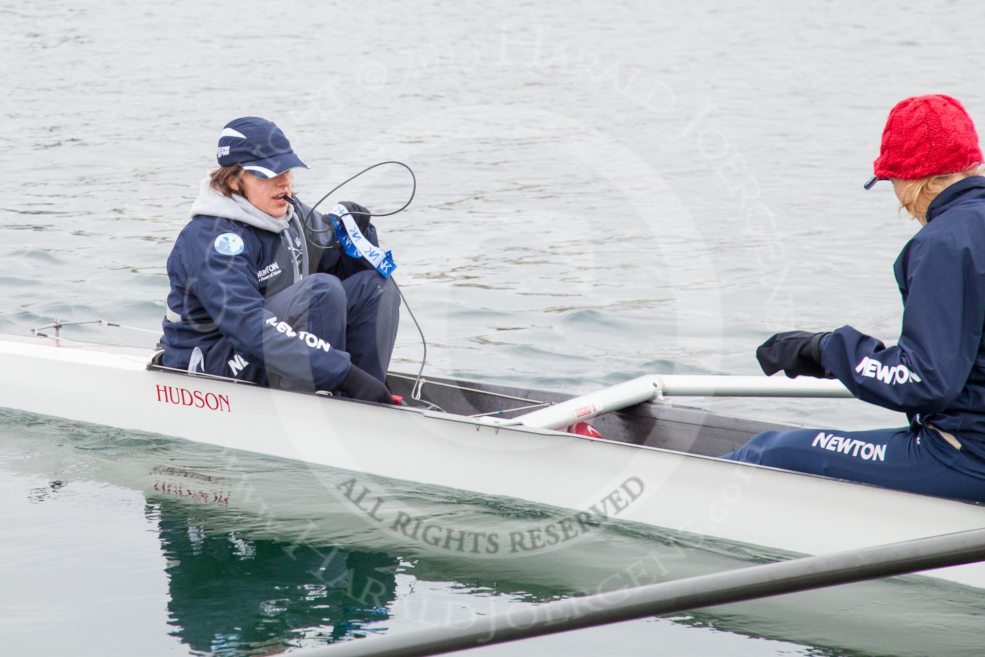 Photo 1302241117005D20678HaraldJoergens The Boat Race season 2013 - fixture OUWBC vs Molesey BC: OUWBC-cox Cox Sophie Shawdon and stroke Maxie Scheske.. Dorney Lake, Dorney, Windsor, Berkshire, United Kingdom, on 24 February 2013 at 11:17, image #42
