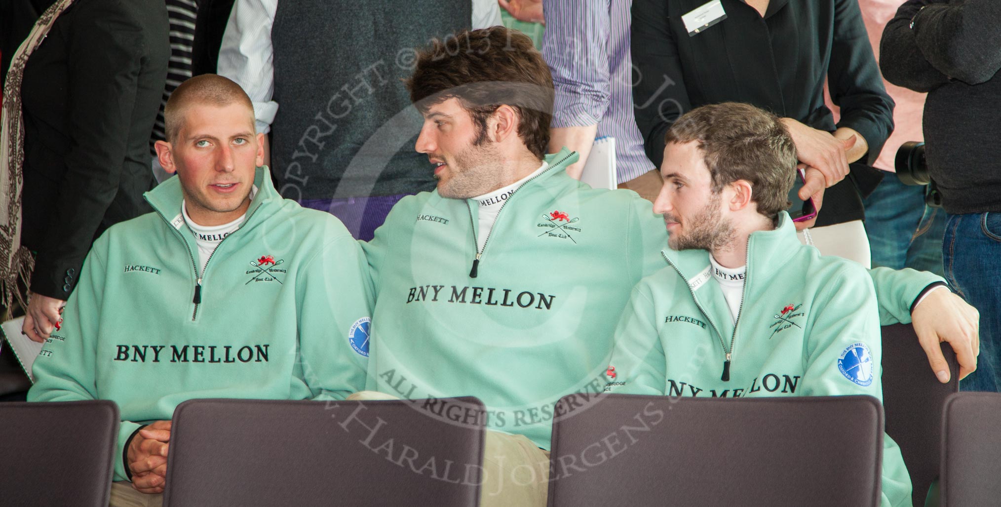 The Boat Race season 2013 - Crew Announcement and Weigh In: CUBC's Niles Garratt, Stephen Dudek, and Henry Fieldman.. BNY Mellon Centre, London EC4V 4LA, United Kingdom, on 04 March 2013 at 10:57, image #98