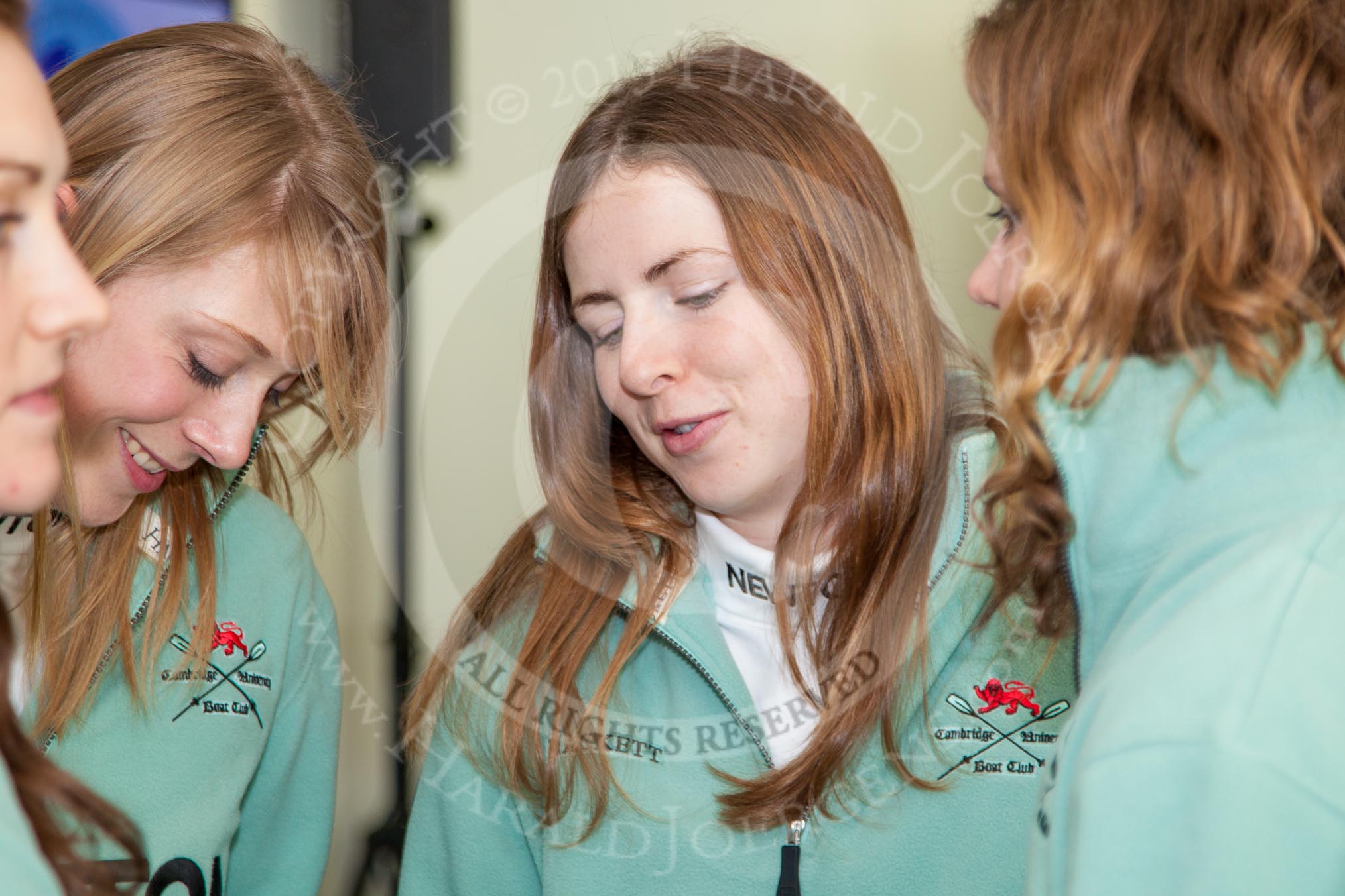 The Boat Race season 2013 - Crew Announcement and Weigh In: CUWBC's Jessica Denman, Claire Watkins, and Holly Game.. BNY Mellon Centre, London EC4V 4LA, United Kingdom, on 04 March 2013 at 11:02, image #101