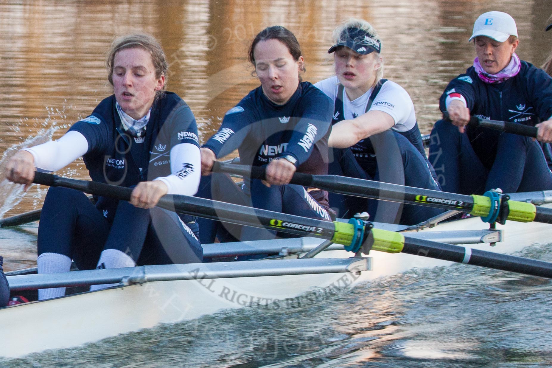 The Boat Race season 2013 - OUWBC training: In the OUWBC Blue Boat 7 seat Anastasia Chitty, Harriet Keane, Amy Varney, and 4 seat Jo Lee.. River Thames, Wallingford, Oxfordshire, United Kingdom, on 13 March 2013 at 17:30, image #154