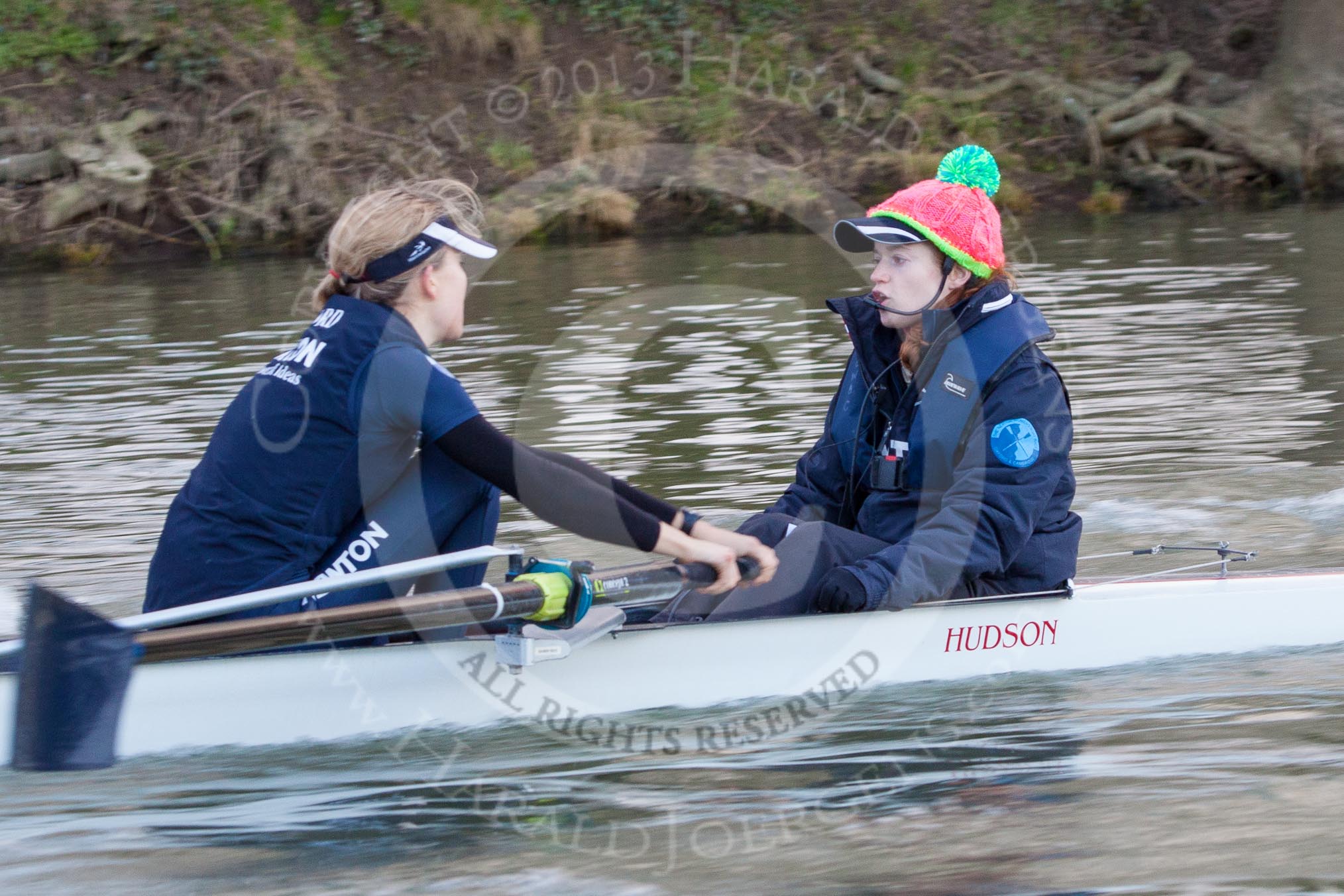 The Boat Race season 2013 - OUWBC training: In the OUWBC Blue Boat stroke Maxie Scheske and cox Katie Apfelbaum.. River Thames, Wallingford, Oxfordshire, United Kingdom, on 13 March 2013 at 17:12, image #104