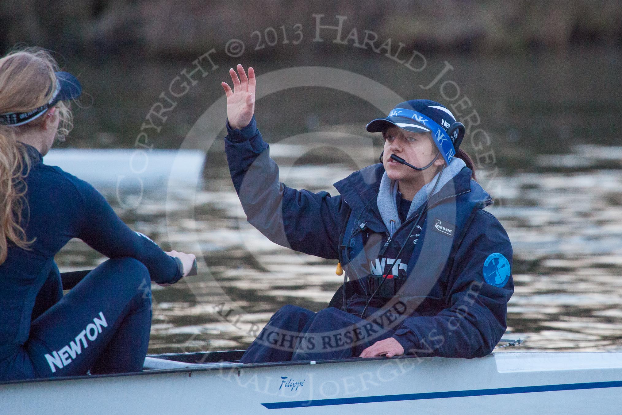 The Boat Race season 2013 - OUWBC training: Cox Sophie Shawdon in charge of Osiris, the OUWBC reserve boat. In front of Sophie is stroke Emily Chittock..