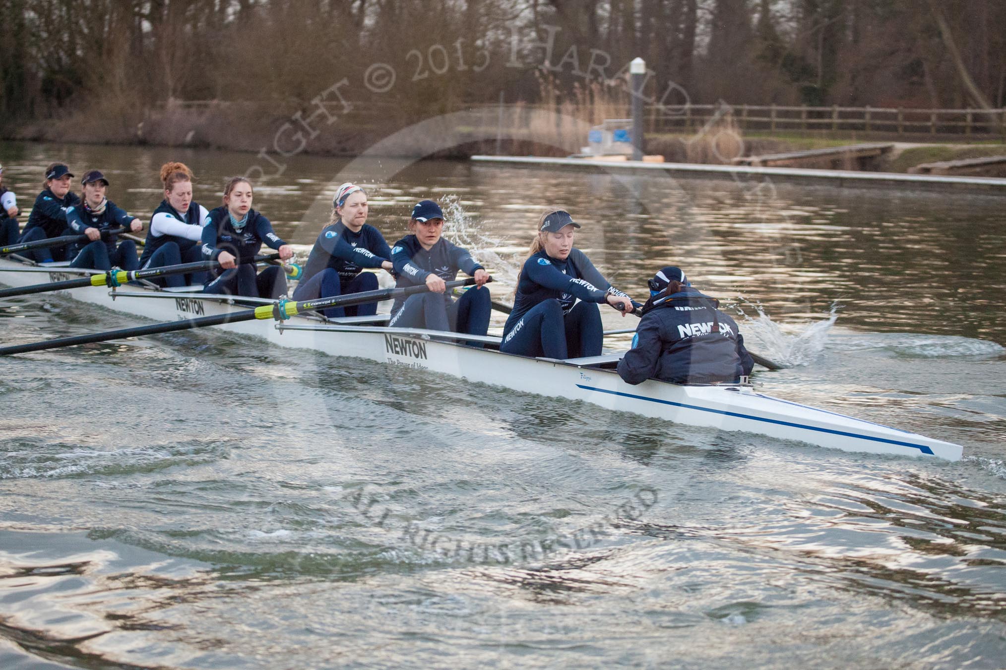 The Boat Race season 2013 - OUWBC training: In Osiris, the OUWBC reserve boat, bow Coralie Viollet-Djelassi, Elspeth Cumber, Hannah Ledbury, Eleanor Darlington, Rachel Purkess, Caitlin Goss, Annika Bruger, stroke Emily Chittock, and cox Sophie Shawdon..