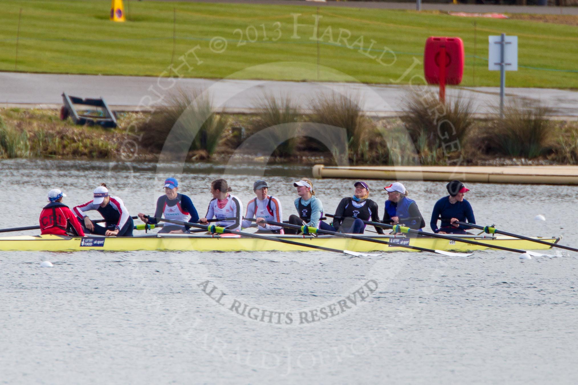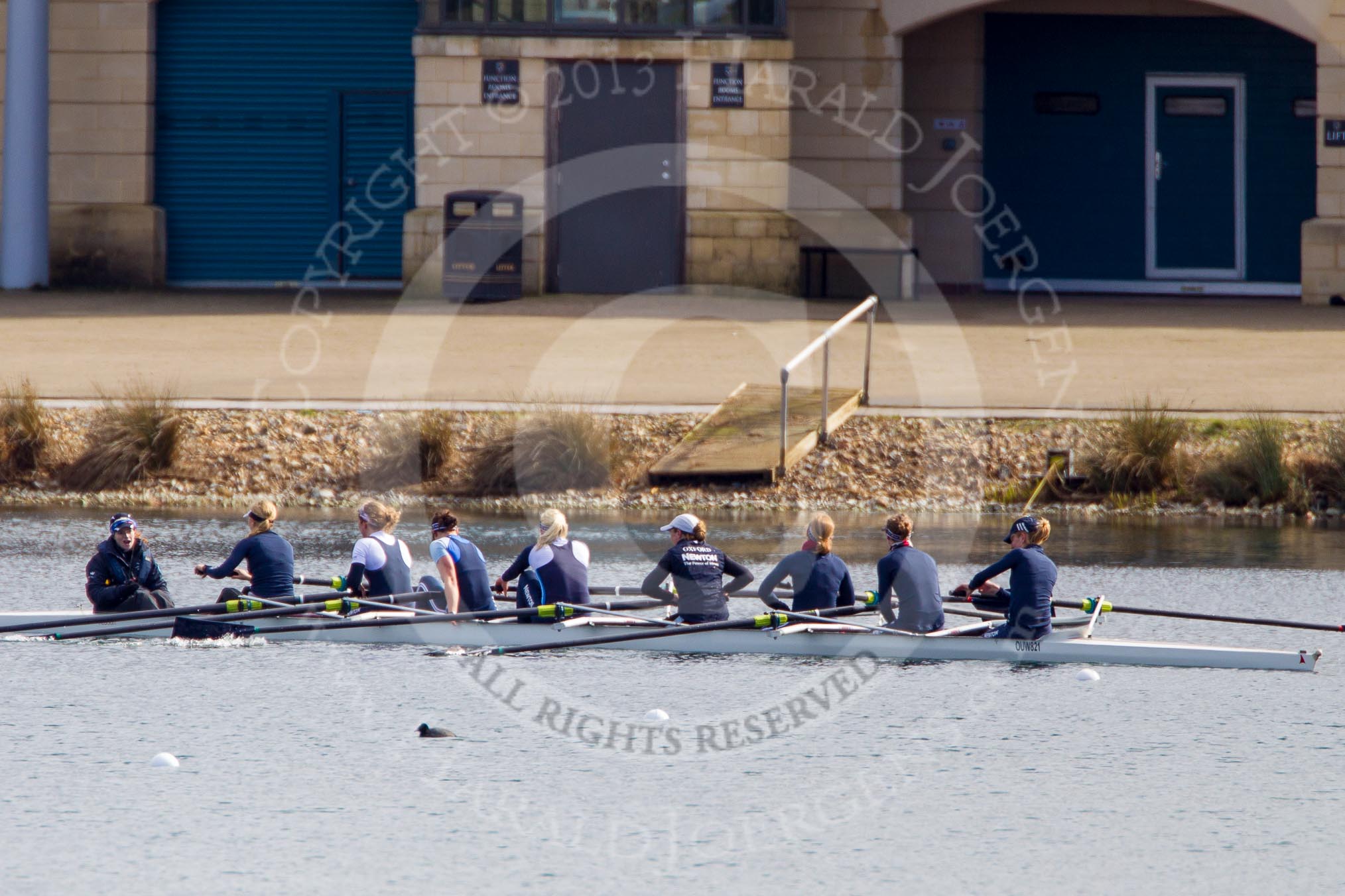 The Boat Race season 2013 - fixture OUWBC vs Olympians: In the Oxford (OUWBC) reserve boat Osiris at bow Coralie Viollet-Djelassi, 2 Elspeth Cumber, 3 Hannah Ledbury, 4 Eleanor Darlington, 5 Rachel Purkess, 6 Caitlin Goss, 7 Annika Bruger, stroke Emily Chittock and cox Sophie Shawdon.. Dorney Lake, Dorney, Windsor, Buckinghamshire, United Kingdom, on 16 March 2013 at 12:21, image #252