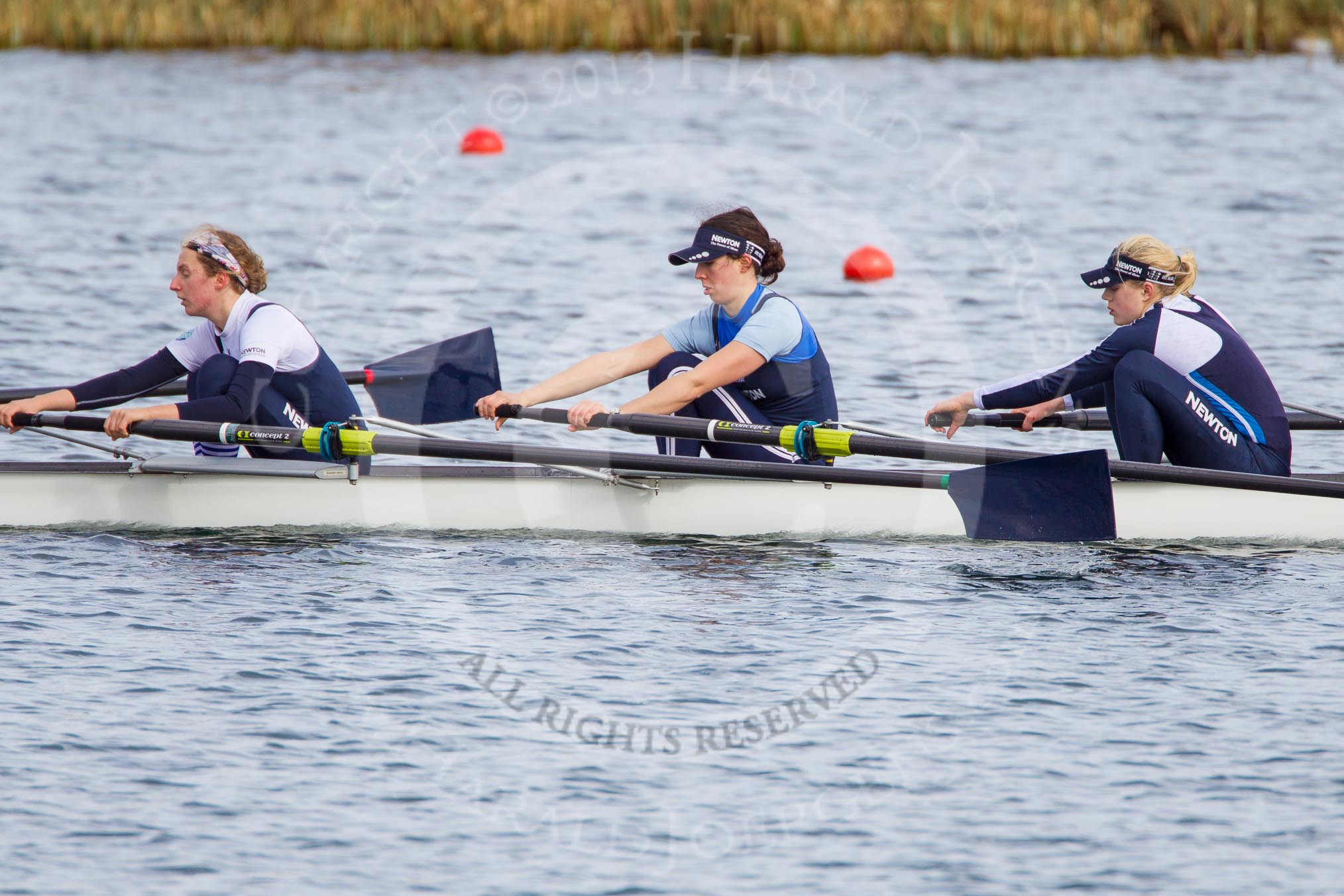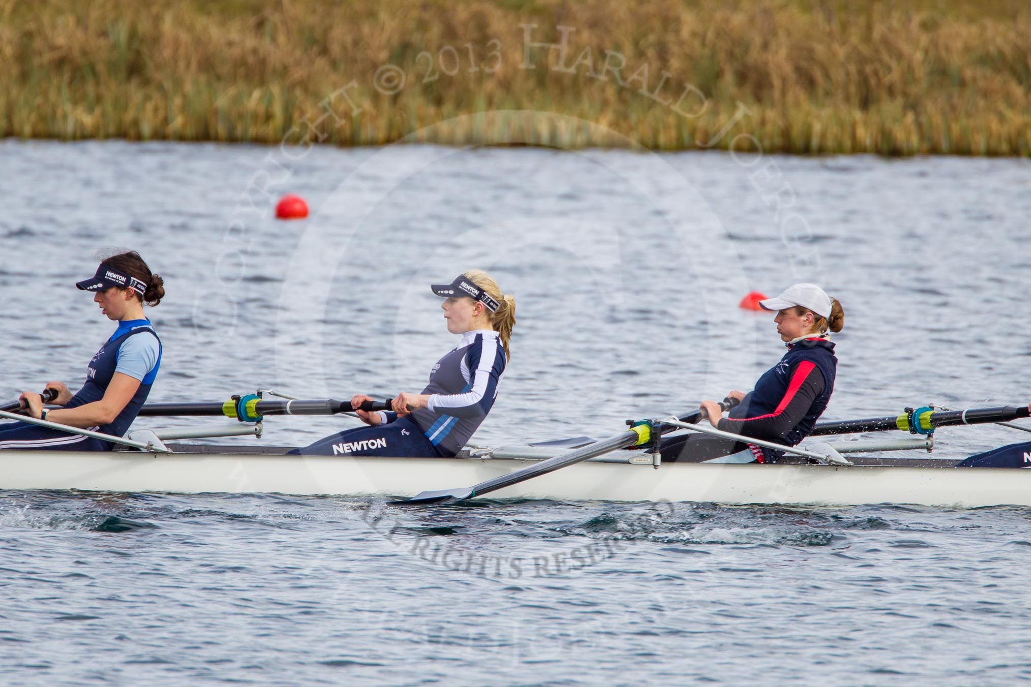 The Boat Race season 2013 - fixture OUWBC vs Olympians: In the Olympians boat 3 seat Christiana Amacker, 2 Kate Johnson and at bow Natasha Townsend.. Dorney Lake, Dorney, Windsor, Buckinghamshire, United Kingdom, on 16 March 2013 at 12:25, image #302
