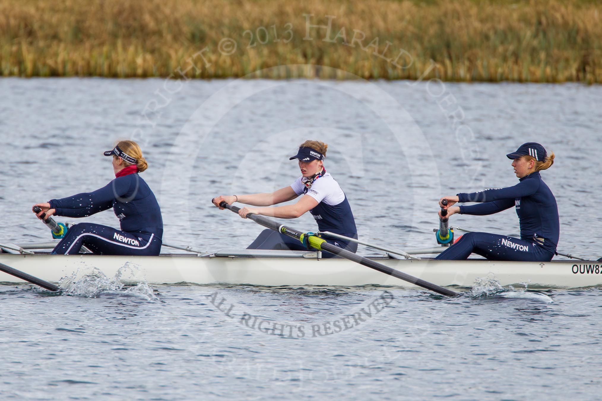 The Boat Race season 2013 - fixture OUWBC vs Olympians: In the Oxford (OUWBC) Blue Boat 6 seat Harriet Keane, 5 Amy Varney and 4 Jo Lee.. Dorney Lake, Dorney, Windsor, Buckinghamshire, United Kingdom, on 16 March 2013 at 12:29, image #314