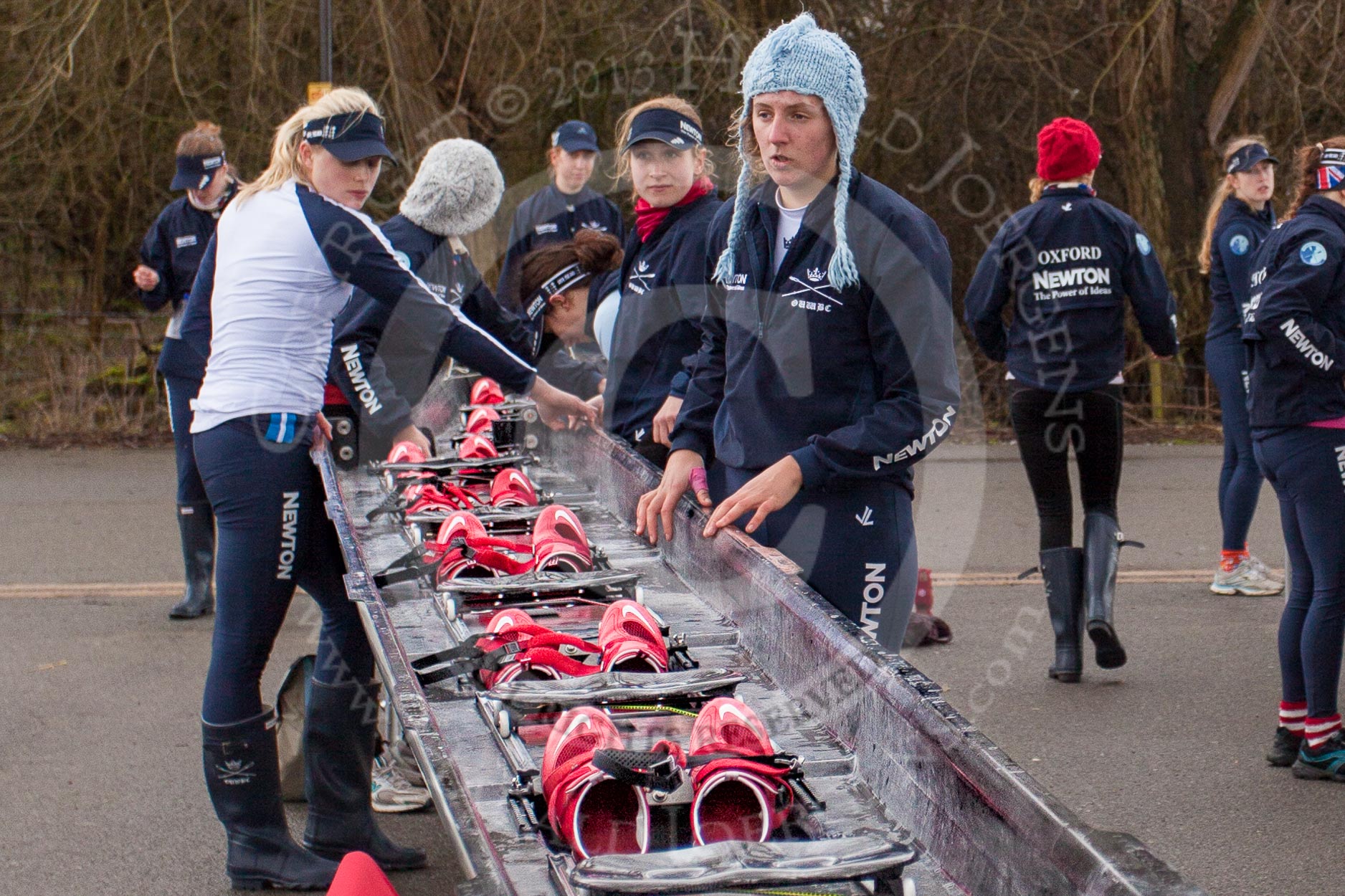 The Boat Race season 2013 - fixture OUWBC vs Olympians: Alice Carrington-Windo and a boat on a trailer.. Dorney Lake, Dorney, Windsor, Buckinghamshire, United Kingdom, on 16 March 2013 at 13:07, image #343